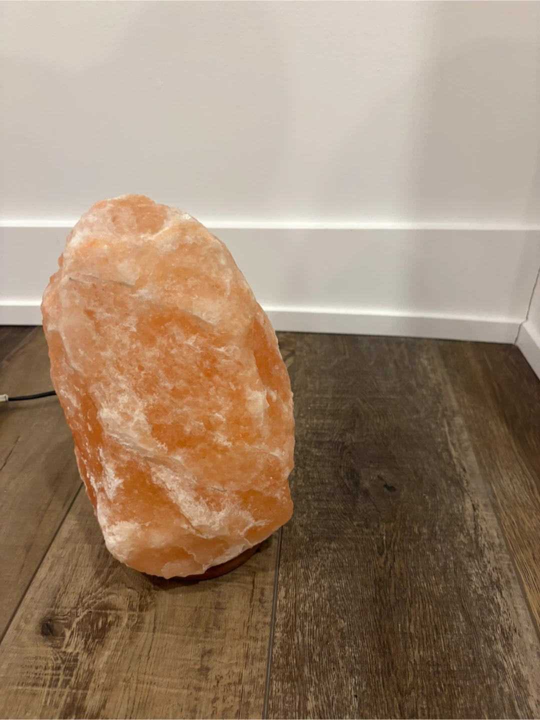 This is a natural Himalayan salt lamp. It's carved from authentic salt rock and emits a warm, ambient glow when lit. Provides a cozy atmosphere for any room.