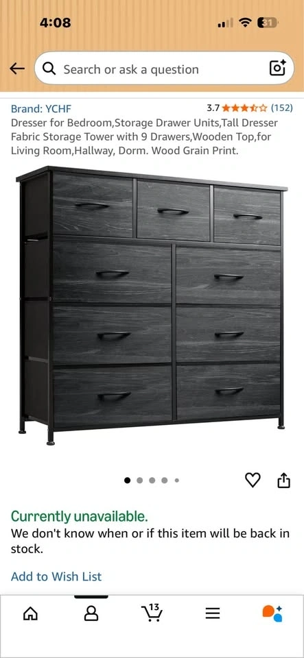 Buy & SellDresser for BedroomDresser for Bedroom$65Tall dresser with 9 fabric storage drawers and a wooden top. Wood grain print. Suitable for living room, hallway, or dorm.WHERE TO MEETCheck LocationView MapSELLERDonaldLakeshore211 review1 chats·0 favorites·23 viewsSEND CHAT TO SELLERHi Donald! I’m interested in your listing.Hi Donald! I’m interested in your listing.Get the Karrot app to chatSign In to chat