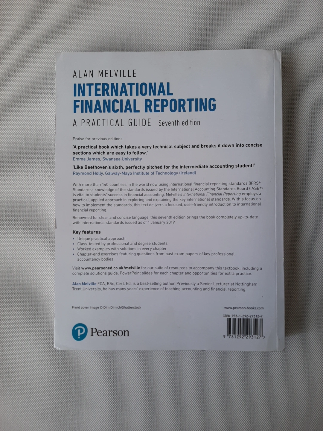 Seventh edition textbook by Alan Melville. Practical guide to international financial reporting. Includes key features and chapter questions. Pearson publication.