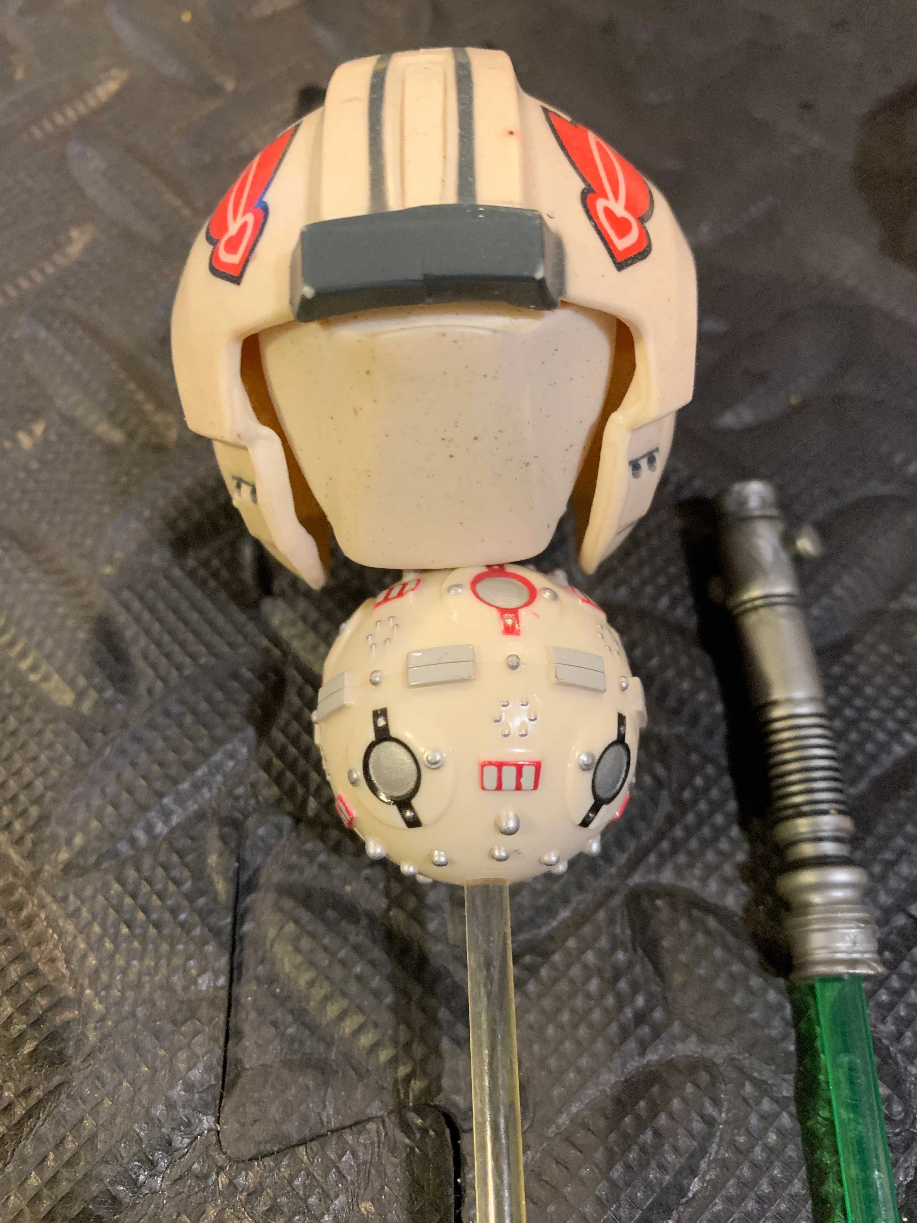 -Comes with 2x training helmets & lightsabers, 1x training droid with stand
