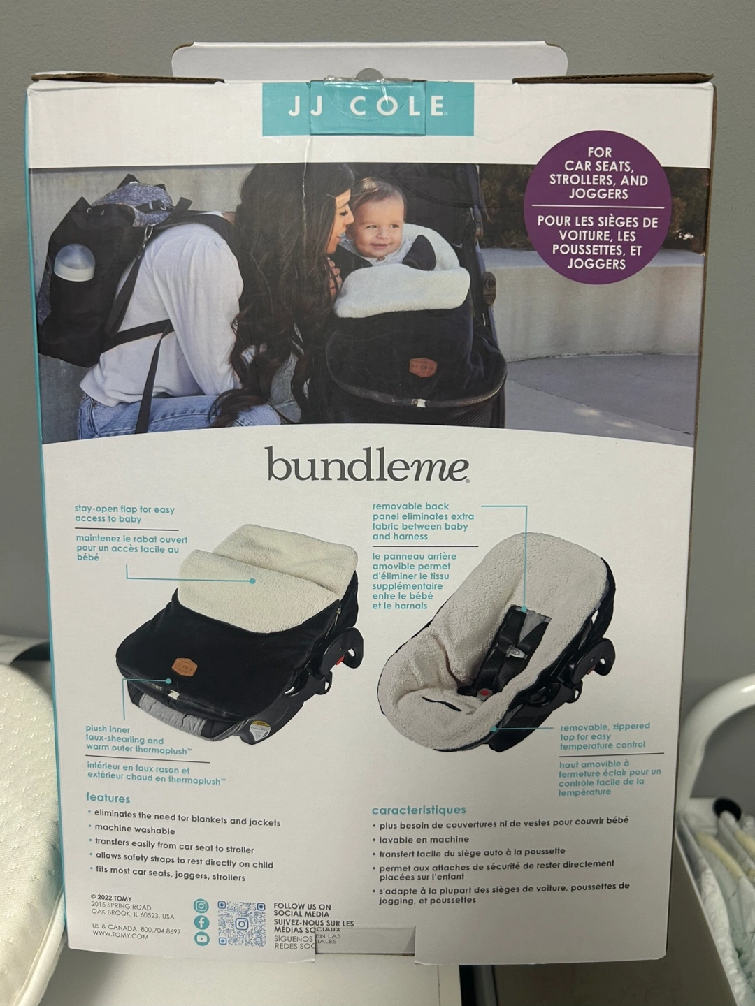 Barely used. Keeps baby warm in car seats and strollers. Plush liner, faux-shearling and warm outer layer. Machine washable. Suitable for infants 0-12m.