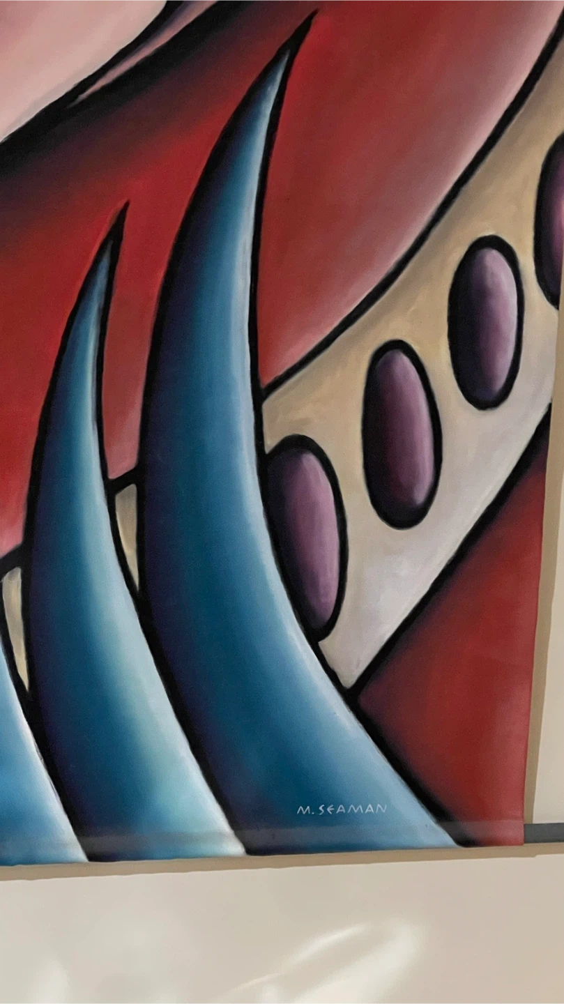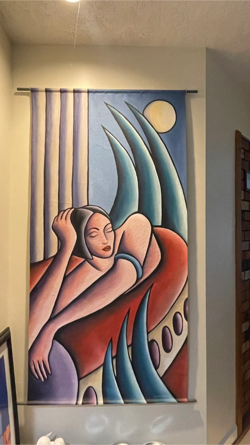 This is a wall art tapestry signed by M. Seaman. It's in great condition and ready to add a unique touch to your home decor