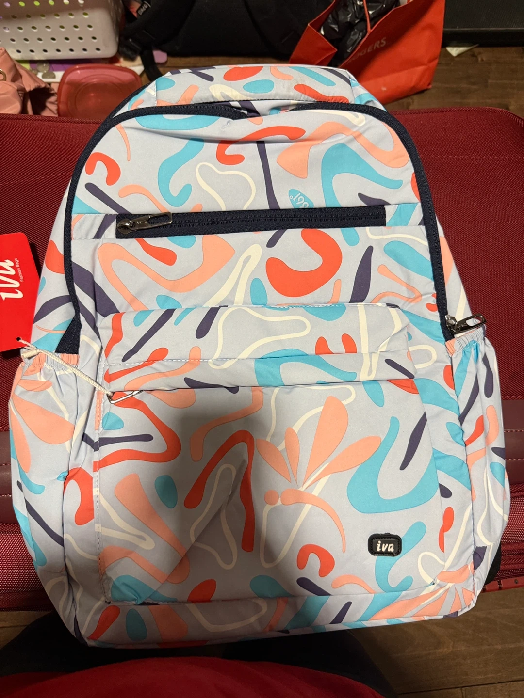 10Looking to sell this super cute and functional Iva backpack! It's in great condition and features a unique, eye-catching pattern. Perfect for school, travel, or everyday use! It has multiple compartments to keep your belongings organized.