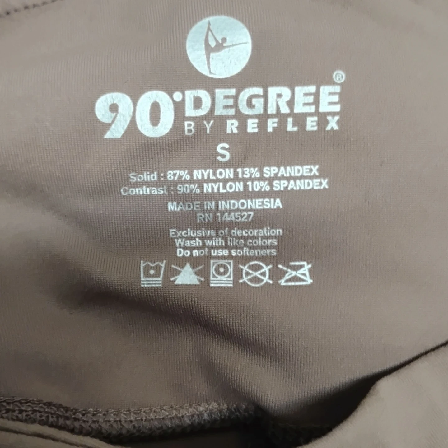 These 90 Degree By Reflex bike shorts are size small. They're made with a blend of 87% nylon and 13% spandex for solid colours, and 90% nylon and 10% spandex for contrast colours. Great for workouts or casual wear!
