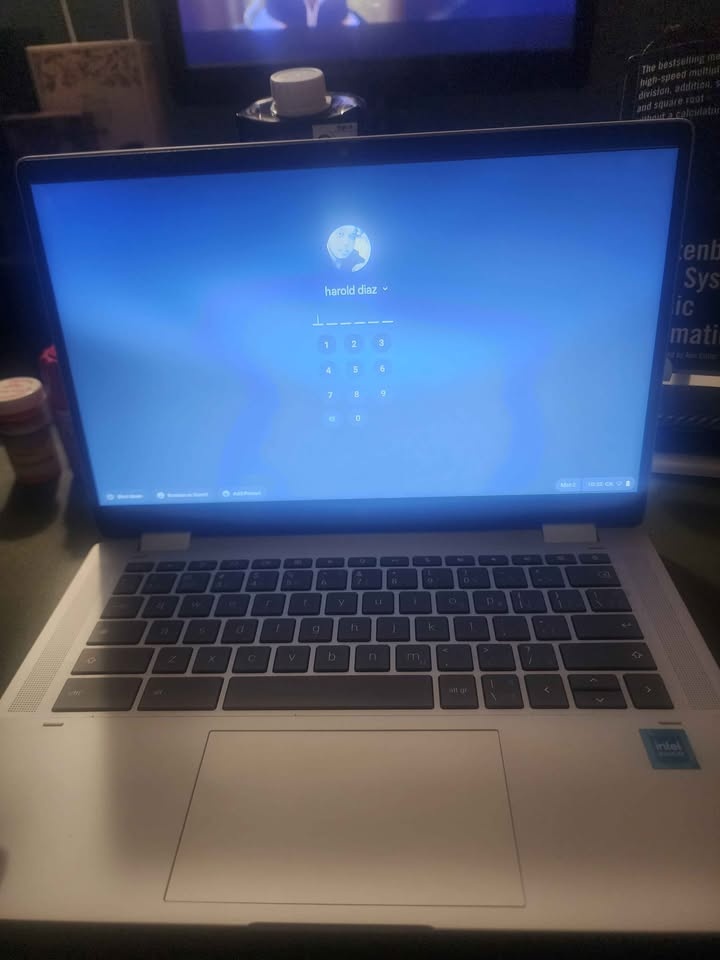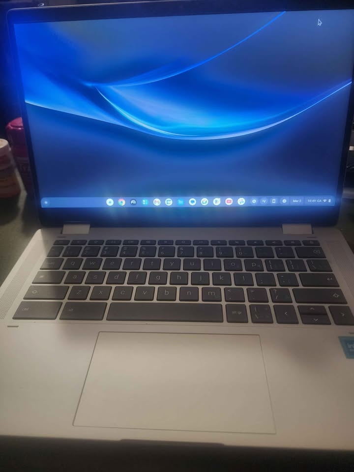 HP Chromebook x360 14 inch 2-in-1 Laptop with HD Touch Display. Features an Intel Processor N100, 4 GB RAM, 64 GB eMMC, and Intel UHD Graphics running Chrome OS. Includes an HD Camera with Shutter and Adaptive Battery Life. Comes with a gaming cooling pad. Laptop is in near perfect condition. $225