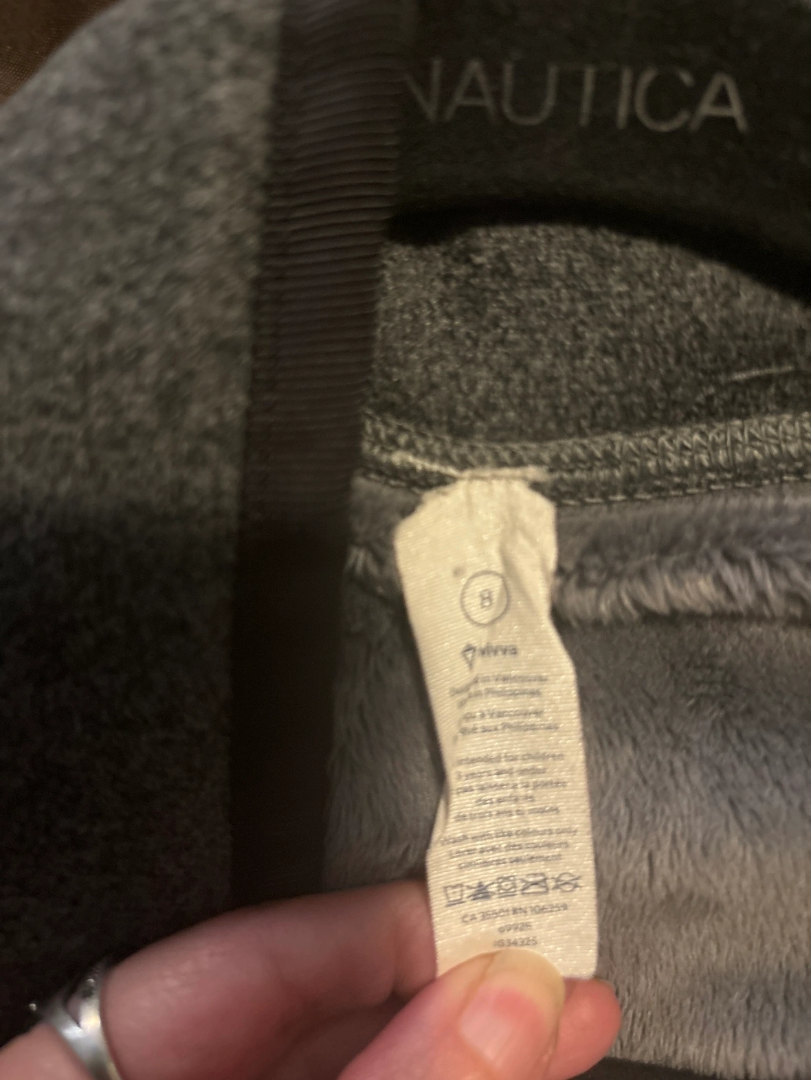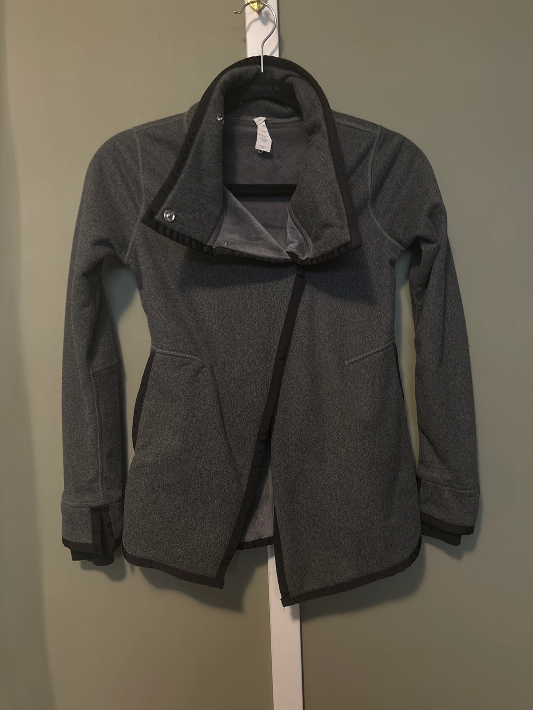 12Grey fleece jacket with black trim. Size 8