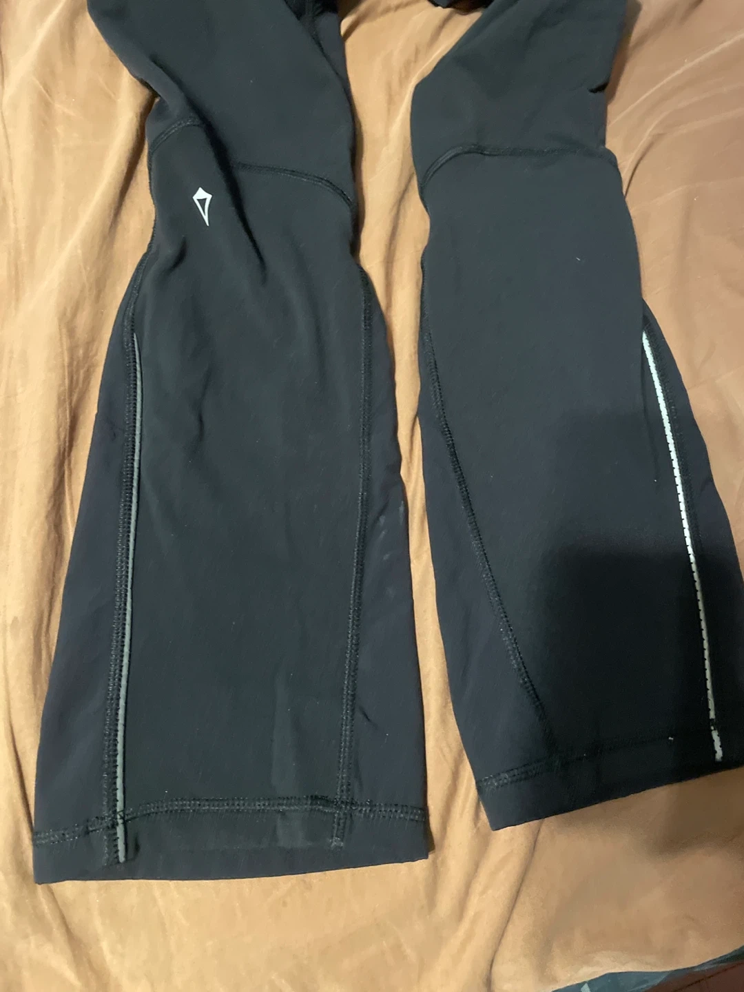 10Two pairs of pants Black pair has reflectors on back of legs Grey pair is super comfy, never worn Both are pants and not tights Tanktop