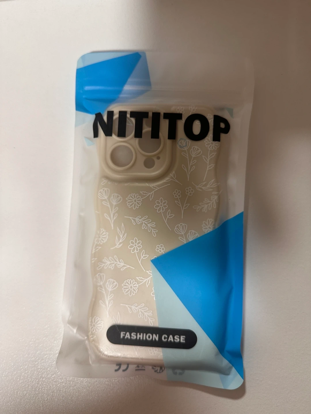 It's a white case with a delicate floral pattern.