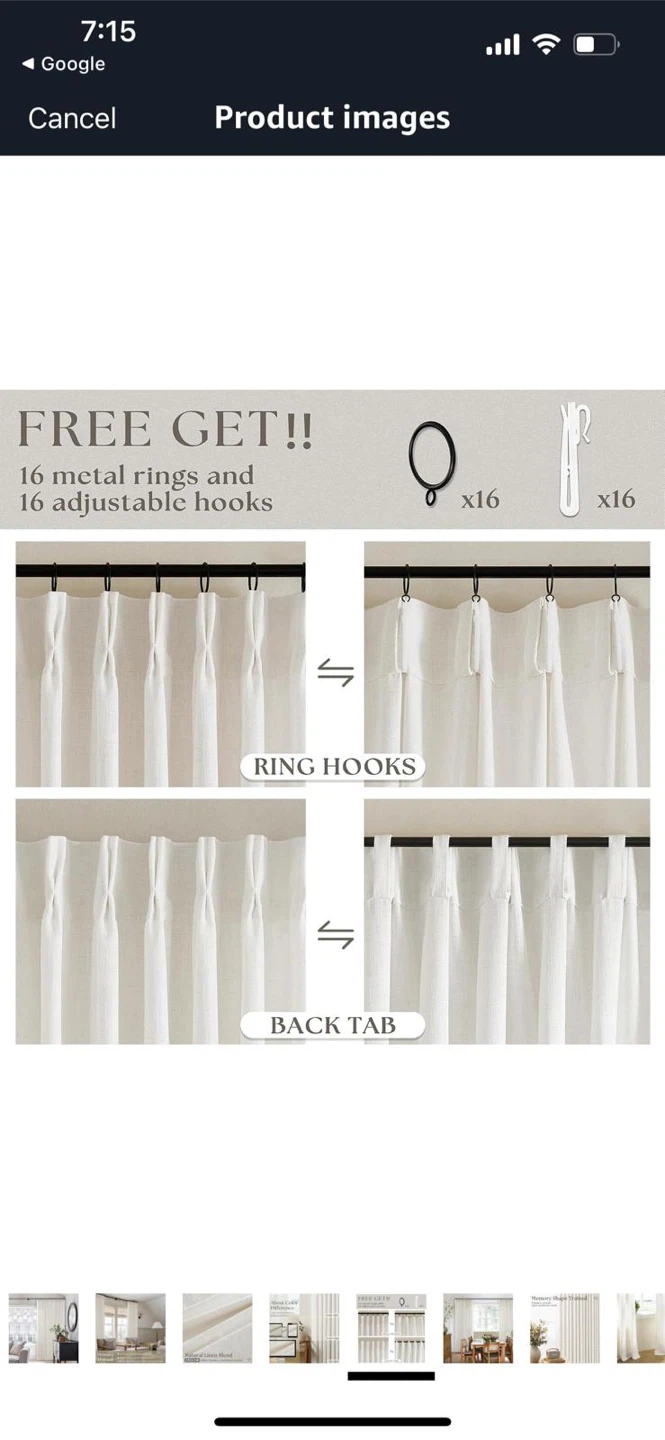 These are Brand new natural linen blend curtains! They feature a rich linen texture. Included are 16 adjustable hooks and rings . They are memory trained for aesthetic appeal and shape retention, wrinkle resistance and less maintenance, making curtains a key part of your room's overall vibe! Measurements is ‘’40x96’’ Pickup at the nearest islington Ave,401, Etobicoke!