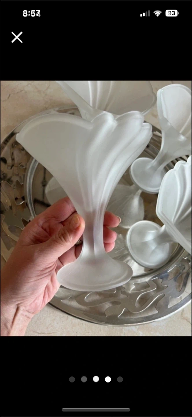 Six frosted glass dessert cups. Elegant petal design. Made in Italy.