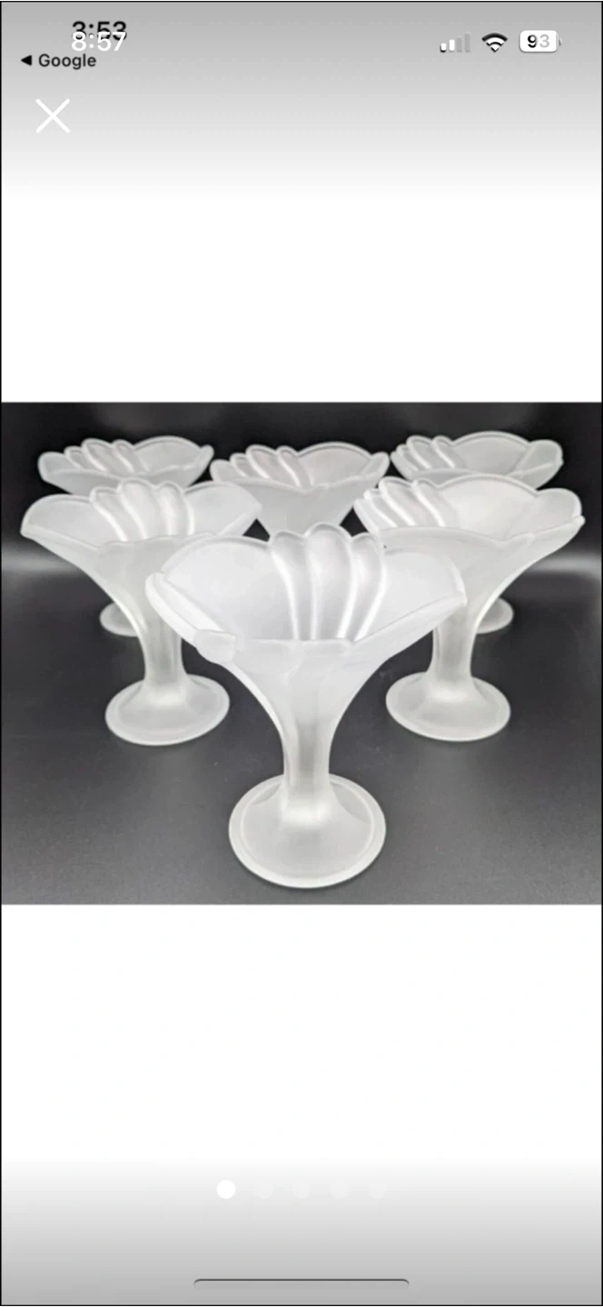 6 Frosted Italian Glass Dessert Cups - Made in Italy