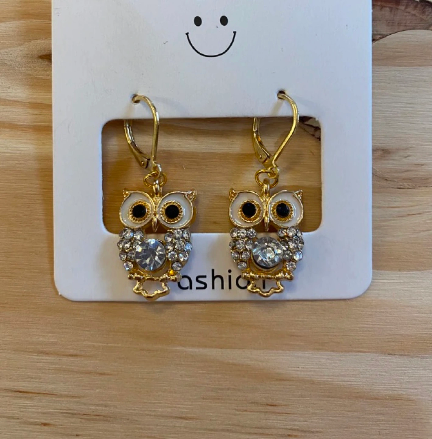 Gold-tone owl earrings. Lever back stainless steel hoops with rhinestone accents. Pick up 680 watt st mon-fri 10-6 or Saturday-Sunday 10-5