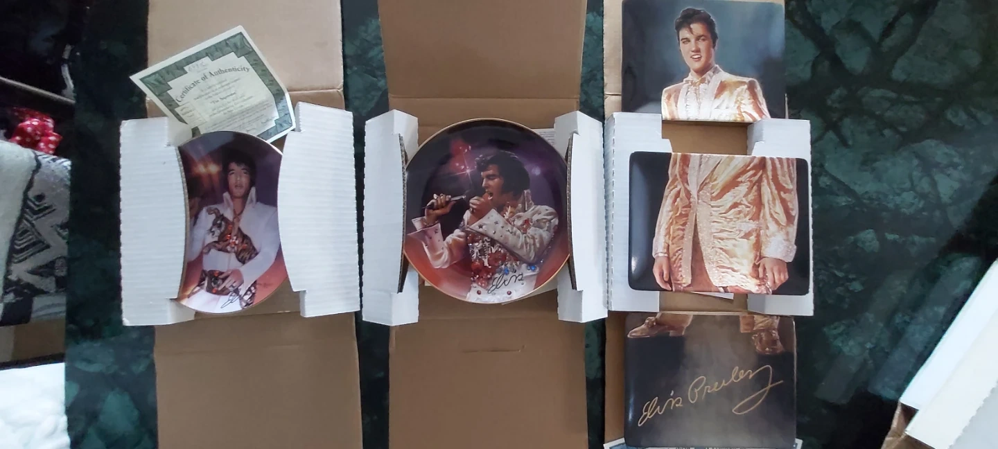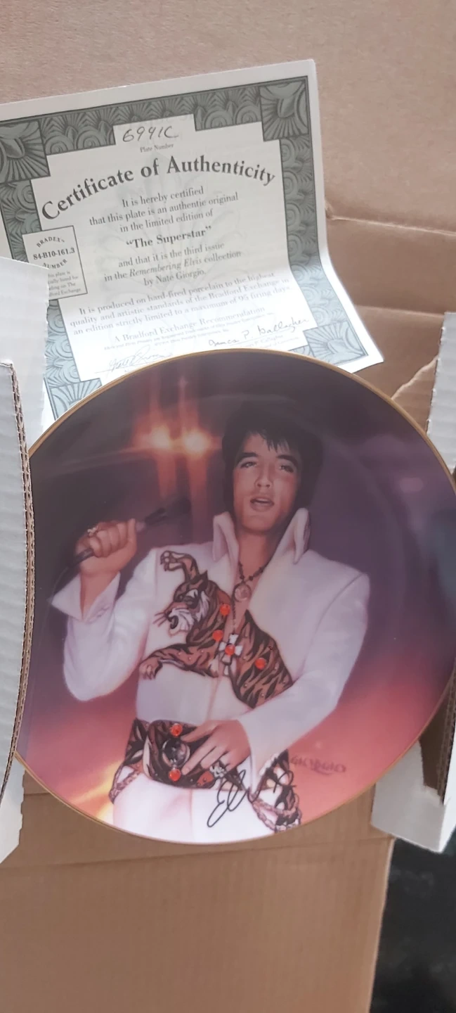 This is a limited edition collector plates featuring Elvis Presley. It comes with a certificate of authenticity. It's part of a collection produced on fine bone china. Last set is a set of 3 plates to make one.