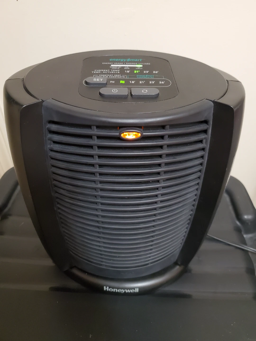 Selling a Honeywell EnergySmart HZ-7300C heater. It's black and in good condition. It has an EnergySmart feature for temperature control. Perfect for keeping warm during the colder months!