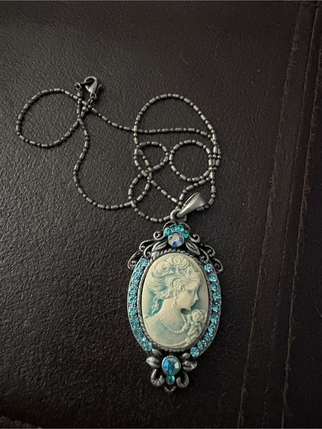 Vintage Cameo Pendant Necklace with Blue Crystals
