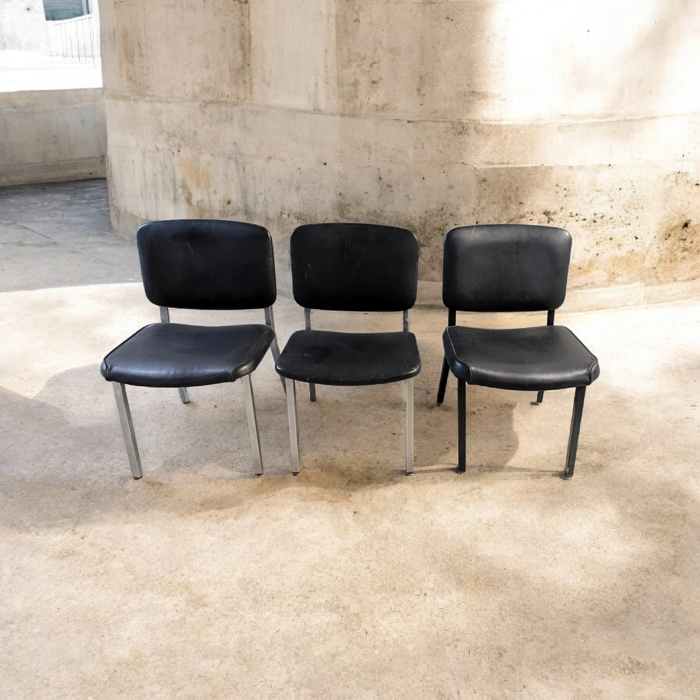 3X Black Vinyl Guest Chair - Padded Office Seating