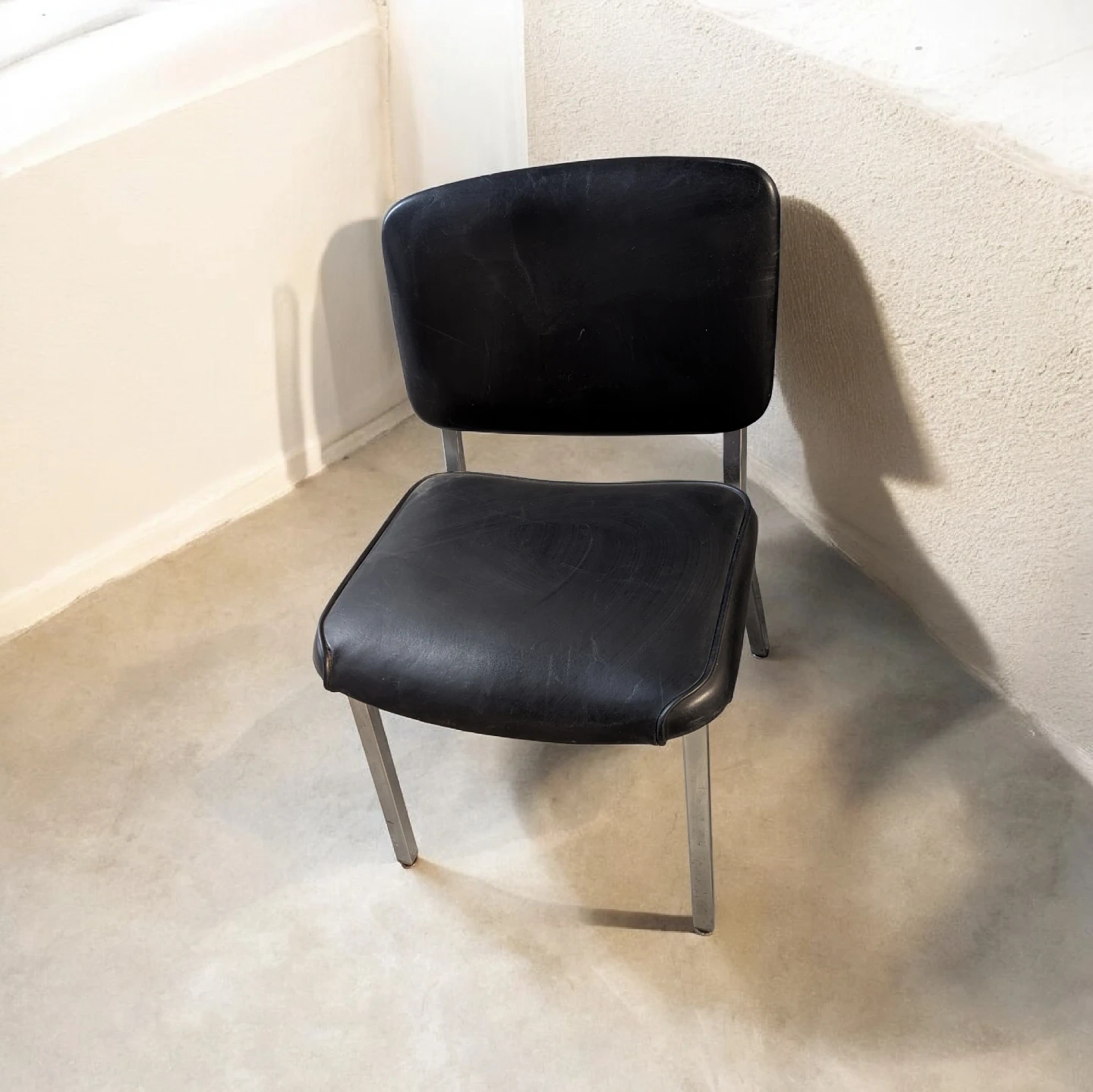 Upgrade your workspace with this professional, high-durability black vinyl guest chair.