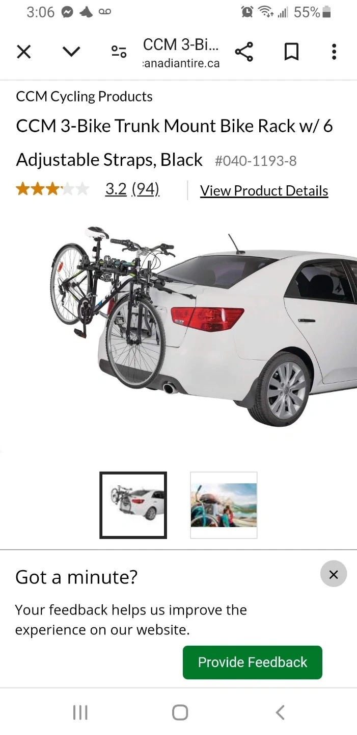 Buy & SellCCM 3-Bike Trunk Mount Bike RackCCM 3-Bike Trunk Mount Bike Rack$46This CCM bike rack is designed to carry up to 3 bikes on your car's trunk. It includes adjustable straps for a secure fit. Black colour.ConditionGoodWHERE TO MEET7-11 LuxstoneView MapSELLERverifiedMichelleLuxstone600 reviews0 chats·0 favorites·3 viewsSEND CHAT TO SELLERHi Michelle! I’m interested in your listing.Hi Michelle! I’m interested in your listing.Get the Karrot app to chatSign In to chat