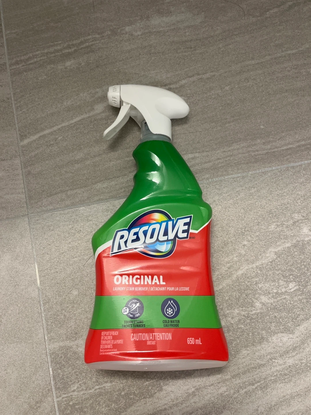 Resolve Original laundry stain remover tackles tough stains. It's formulated for cold water use. 650 mL bottle.