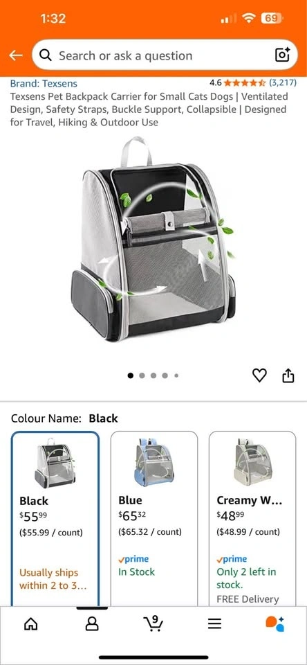 Texsens Pet Backpack Carrier for Small Cats Dogs | Ventilated Design, Safety Straps, Buckle Support, Collapsible | Designed for Travel, Hiking & Outdoor Use.