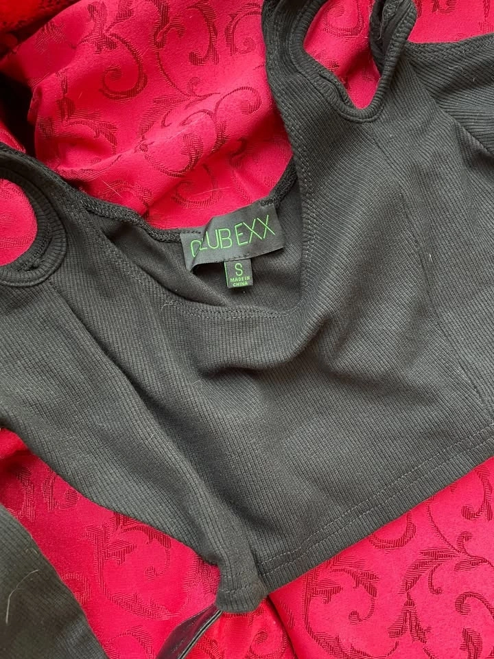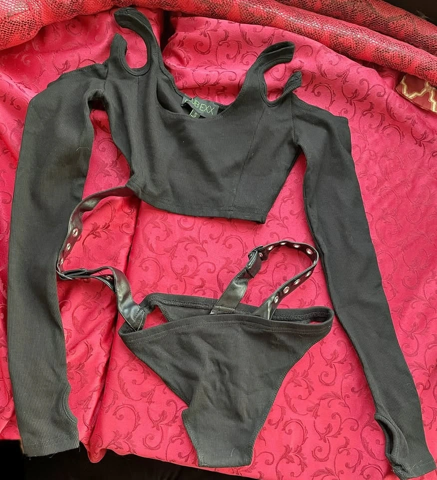 New, never worn Club Exx "Ragin' Renegade Cut Out" bodysuit, size small. Faux leather straps