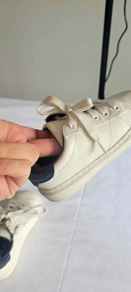 Stylish white and navy blue Zara kids shoes in size 24. Features both shoelaces and a convenient side zipper for easy on and off. Great for everyday wear! Gently used. From a smoke-free home. Check out my other listings for more Zara kids clothes, shoes, and beanies!