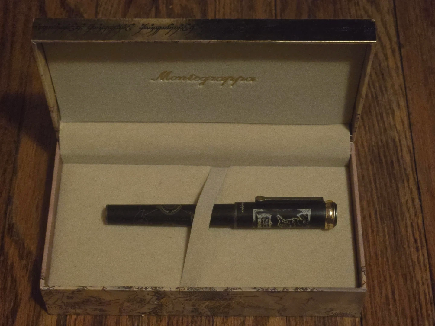 This Montegrappa fountain pen is from The Lord of the Rings collection. It's the 2nd of 100 made, and the first released from the factory. It comes in its original box with an authenticity certificate. The box has minor damage.