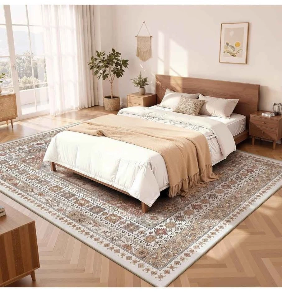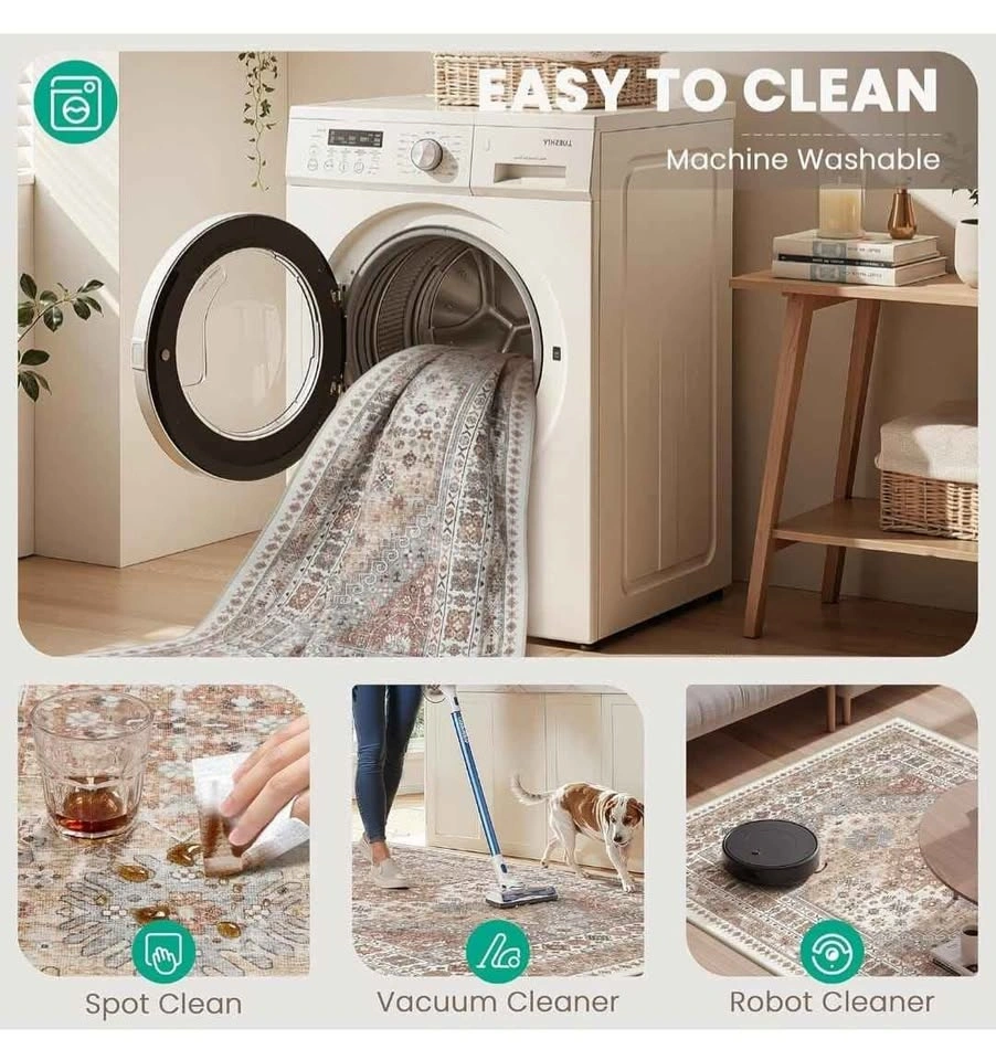 This is a brand new, vintage-style 8x10 area rug. It's designed for living rooms and features a non-slip backing and is washable and stain-resistant. The color is orange.