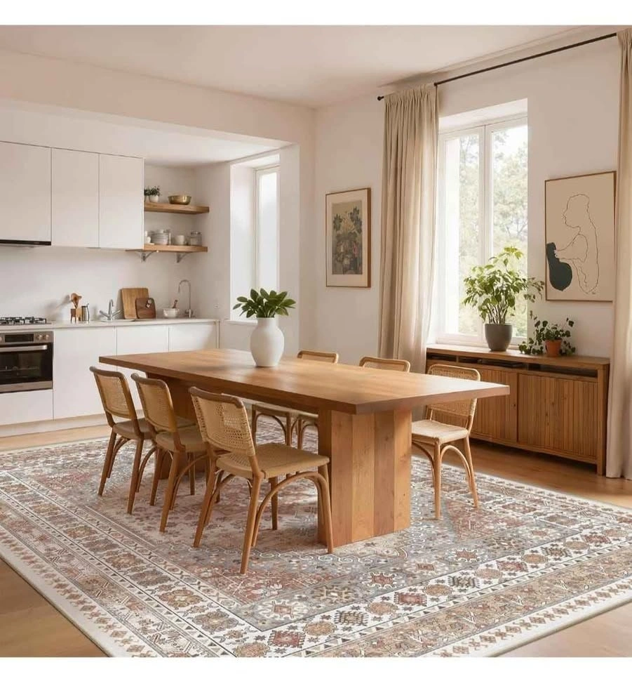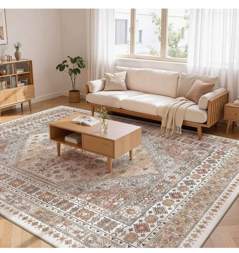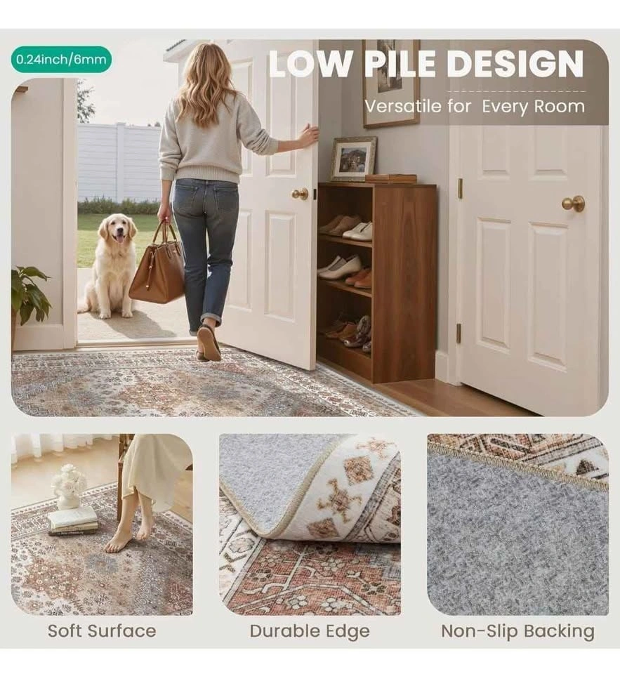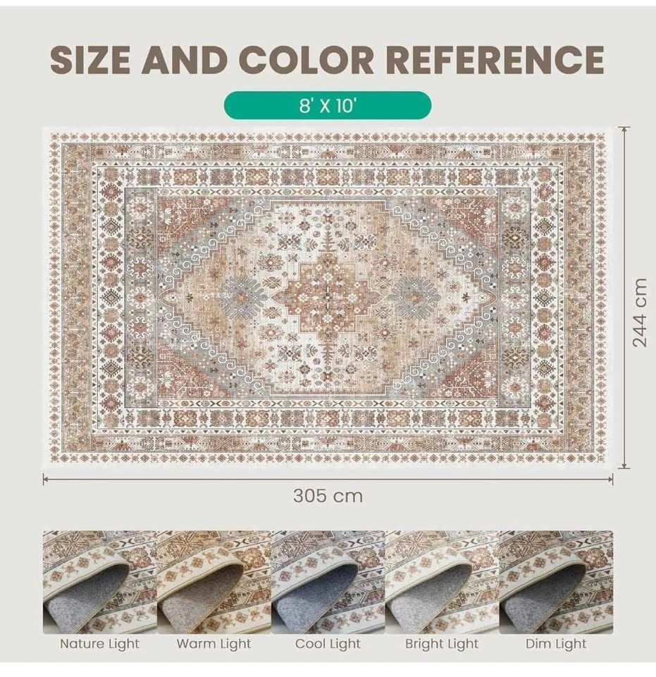 This is a brand new, vintage-style 8x10 area rug. It's designed for living rooms and features a non-slip backing and is washable and stain-resistant. The color is orange.