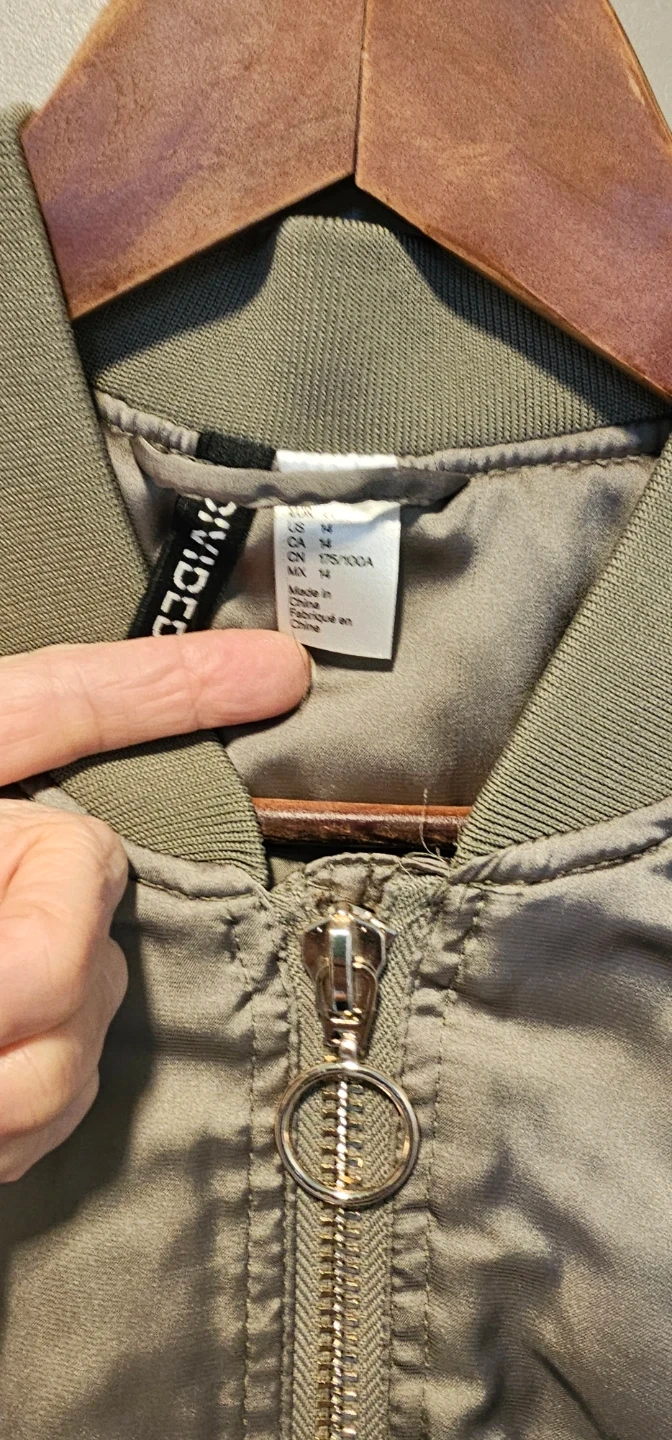 Buy & SellH&M Divided Bomber Jacket Size 14H&M Divided Bomber Jacket Size 14$13A shiny olive green bomber jacket by H&M Divided. Features a zip-up front and ribbed cuffs and hem. Made in China.ConditionLike newSizeUS 14BrandH&M DividedWHERE TO MEETQueen Street West & Portland StreetView MapSELLERverifiedbonooFashion District1000+194 reviews0 chats·0 favorites·8 viewsSEND CHAT TO SELLERHi bonoo! I’m interested in your listing.Hi bonoo! I’m interested in your listing.Get the Karrot app to chatSign In to chat
