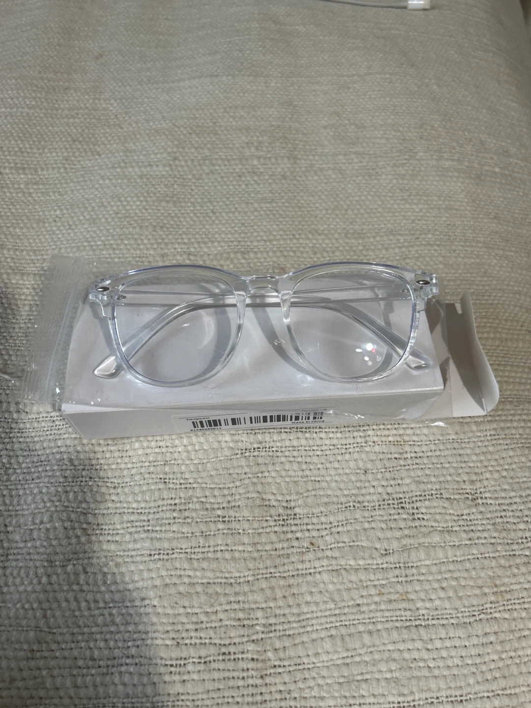 These are clear frame blue light blocking glasses. They come in a box and are sealed in plastic. These glasses help reduce eye strain from screens.