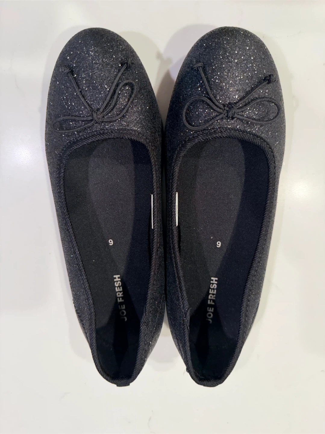 Cute pair of Joe Fresh ballet flats in a sparkly black! They're a size 9 and would be a great addition to your wardrobe