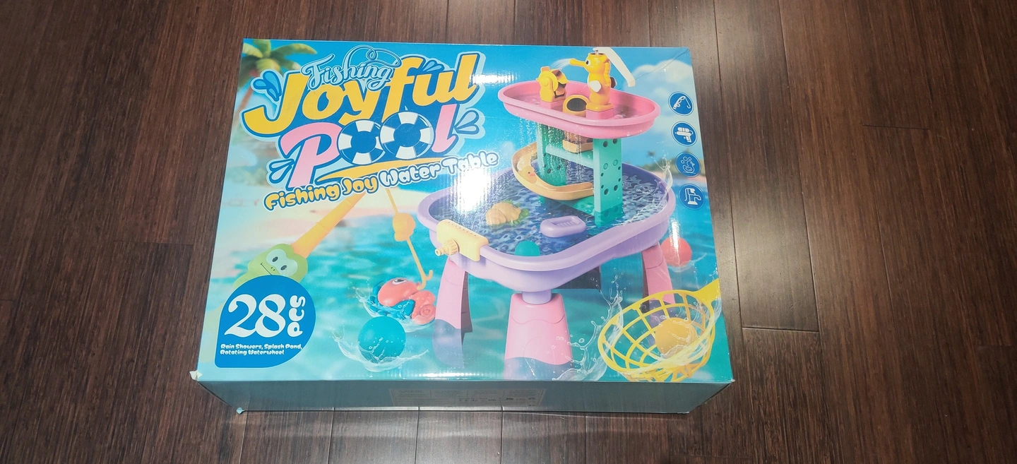 Selling a Fishing Joyful Pool Water Table! It comes with 28 pieces and features rain showers, a splash pond, and a rotating waterwheel. Hours of fun for the little ones! Orginal price $125