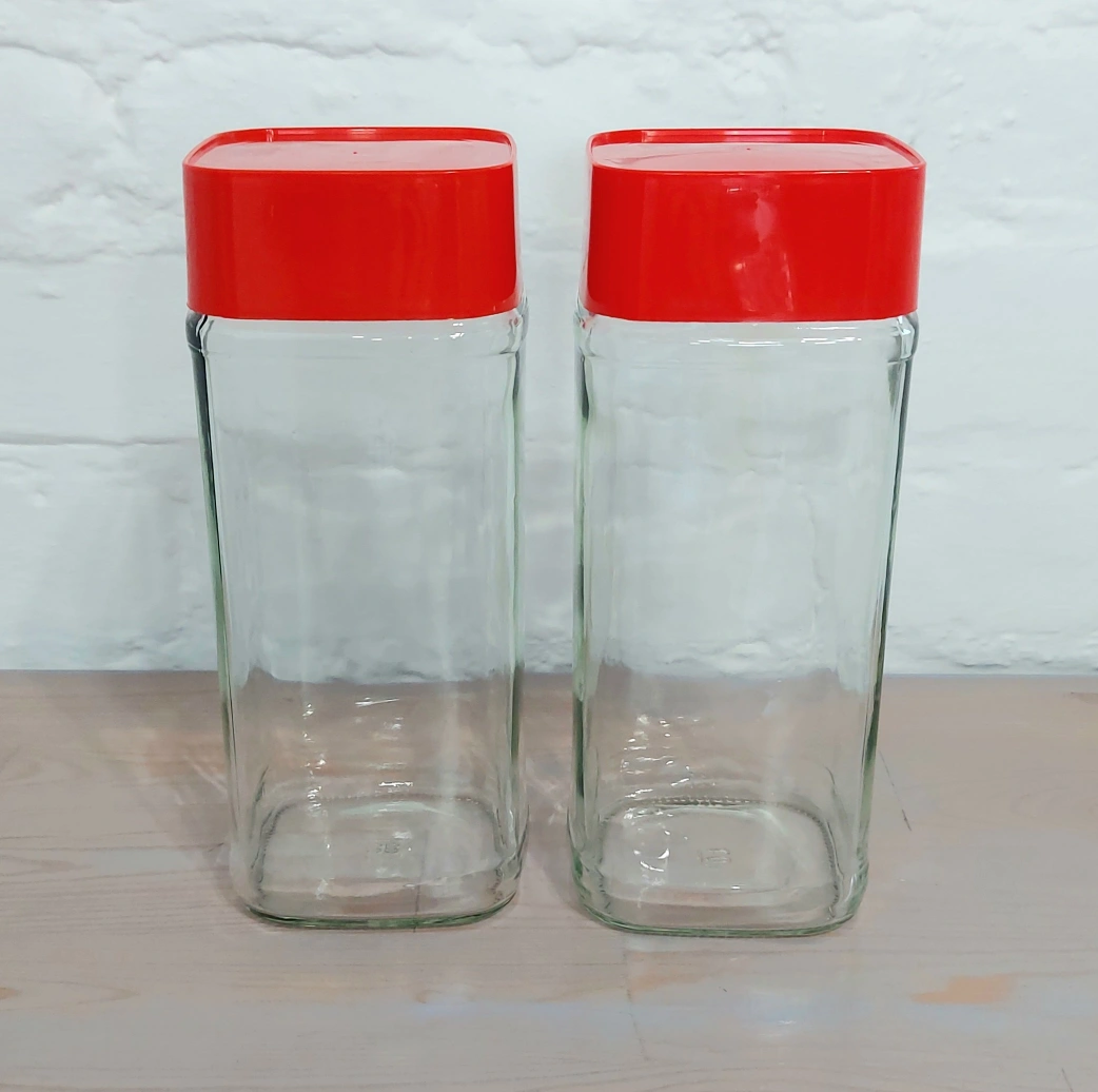 FREE empty glass jars with lidsβ includes two jars, previously had instant coffee in them, both have been had washed. They also make great vases without the lids! These are extras, sl I would like to give them away to someone who can use them.