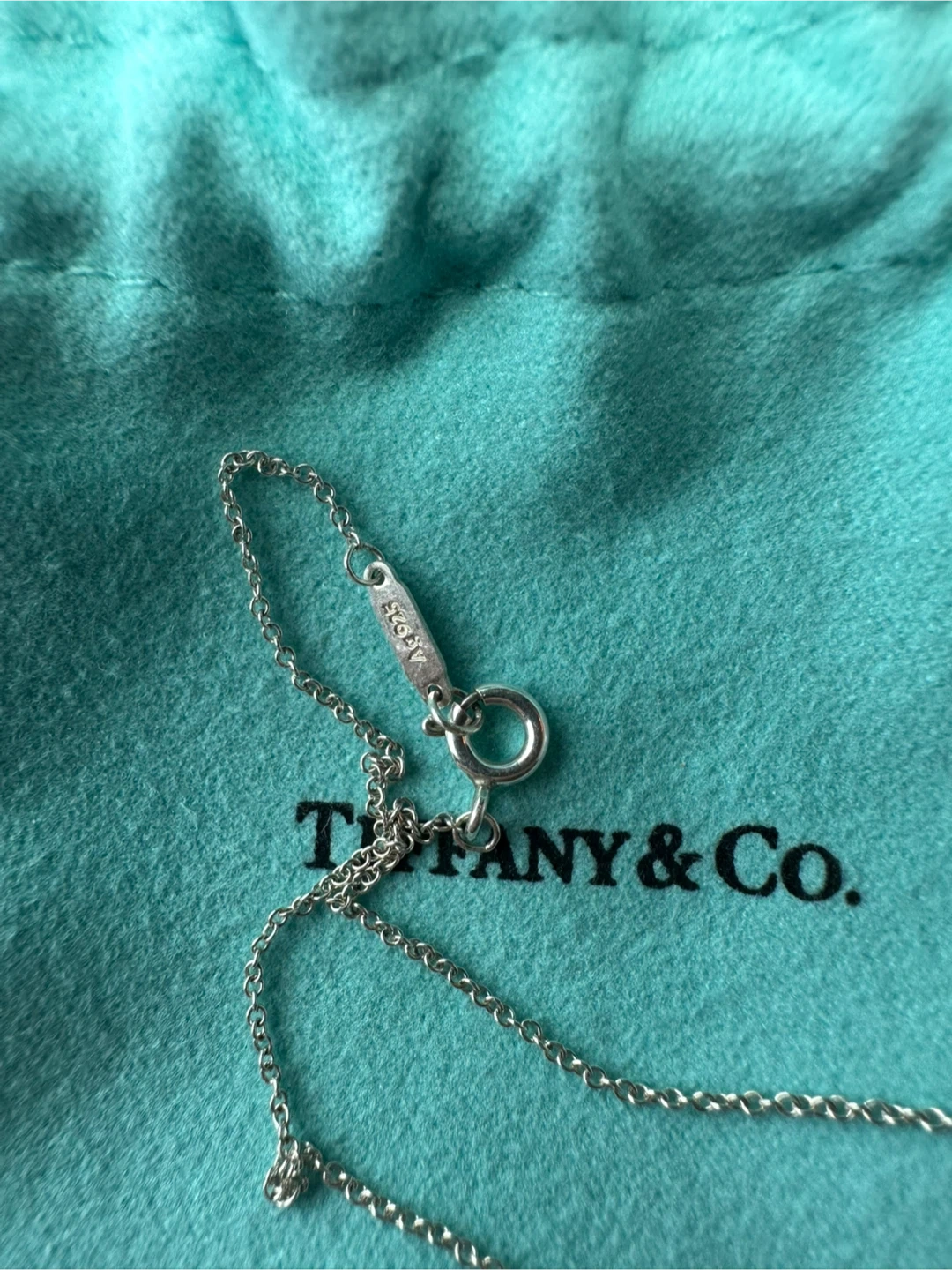 Tiffany & Co. sterling silver necklace featuring the iconic three interlocking rings design. Classic, minimal, and timeless.