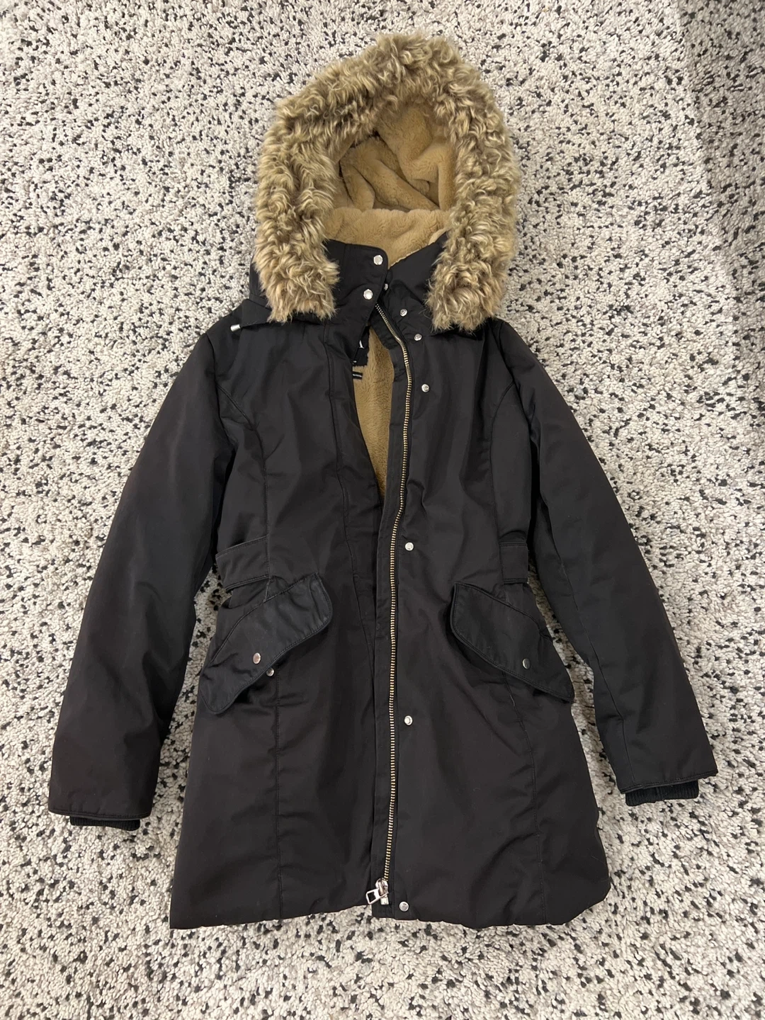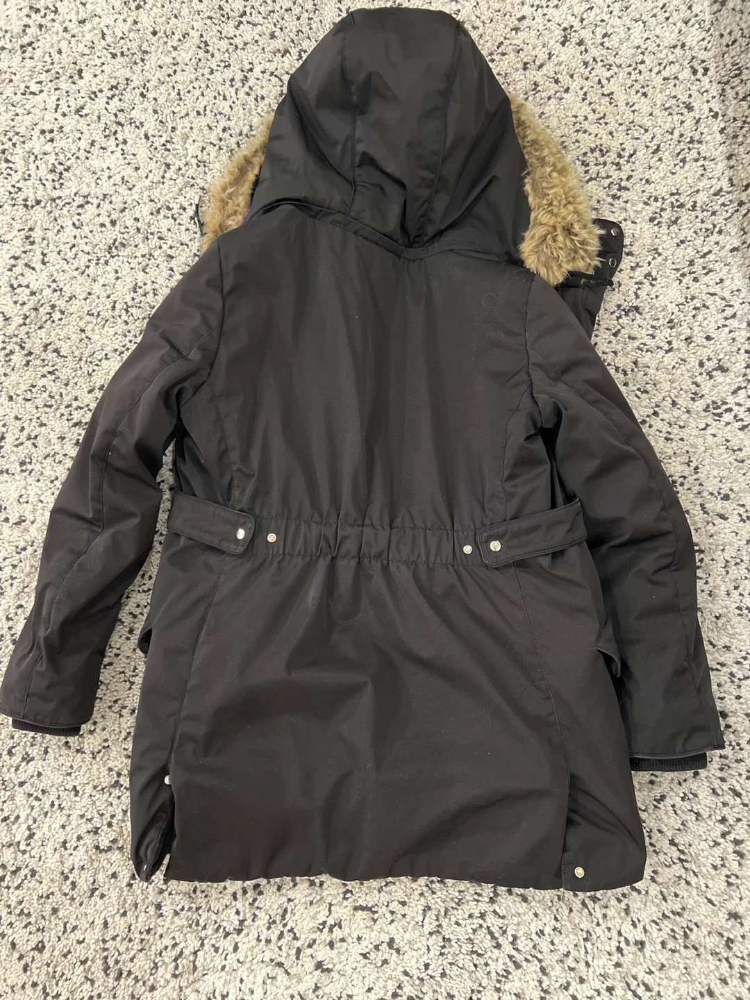 Selling a Zara winter parka in black! It's in great condition and perfect for the cold weather. The parka features a faux fur-lined hood, inside pocket, interior and exterior adjustable waist band.