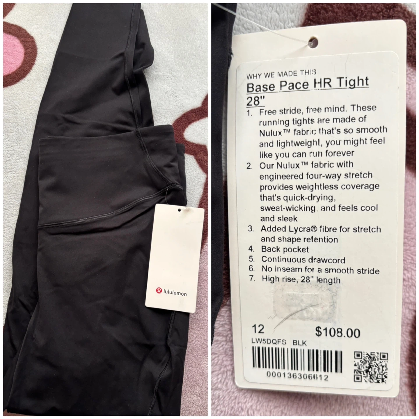 (Lululemon) Base Pace HR Tight 28" Black - Size Women 12