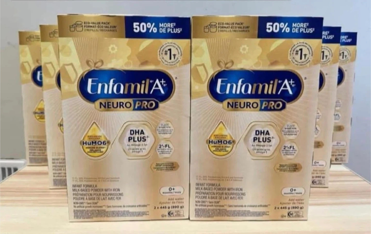 Selling multiple packs of Enfamil A+ Neuro Pro infant formula. Each pack contains 2 x 445g of milk-based powder with iron, perfect for newborns (0+ months).