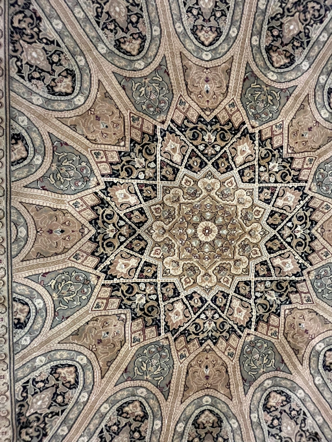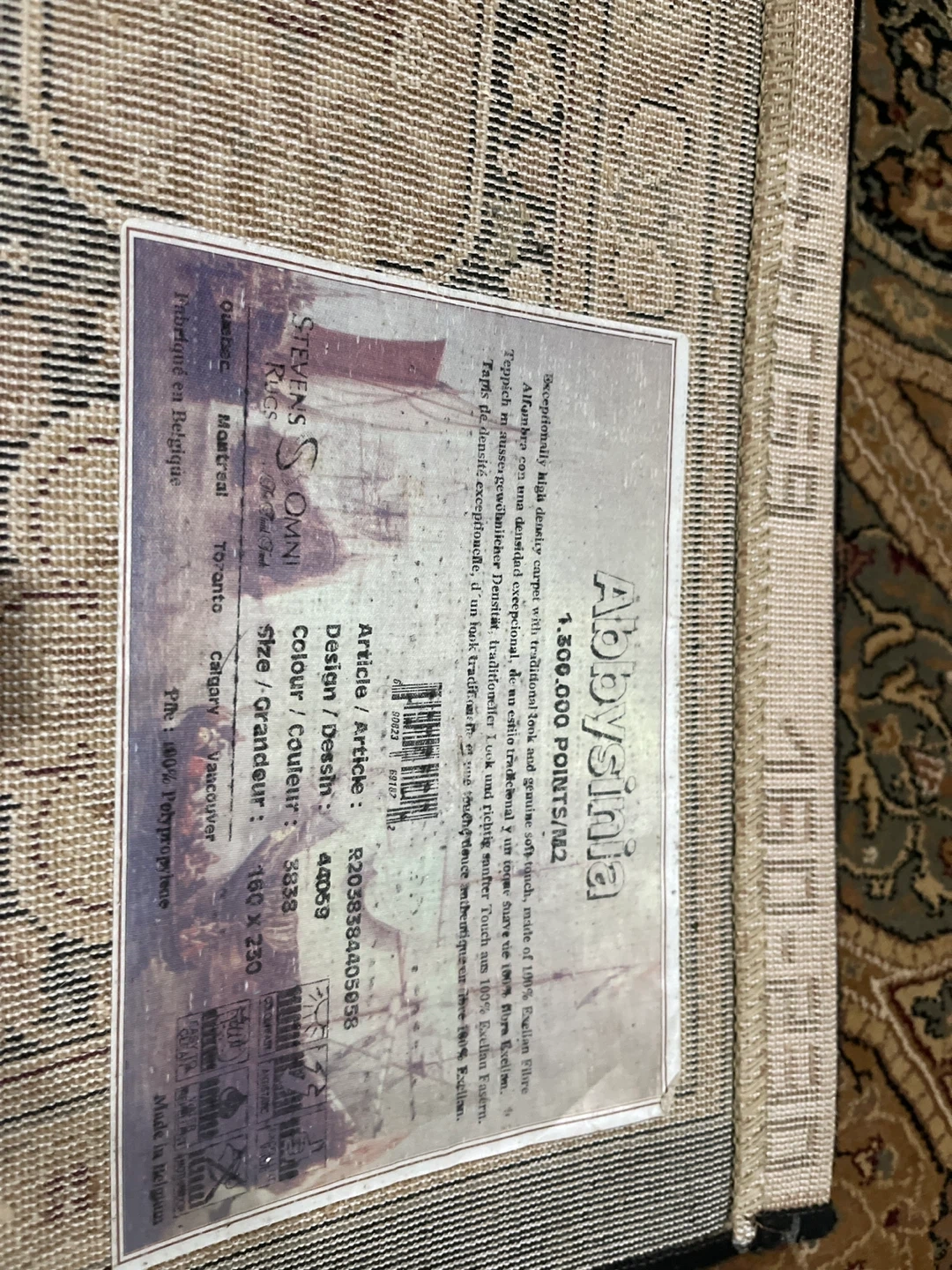 Abbysinia rug with traditional motifs and intricate detailing. It's crafted with 100% Exellan fibers and has a pile density of 1.500.000 points/m2. Made in Belgium.