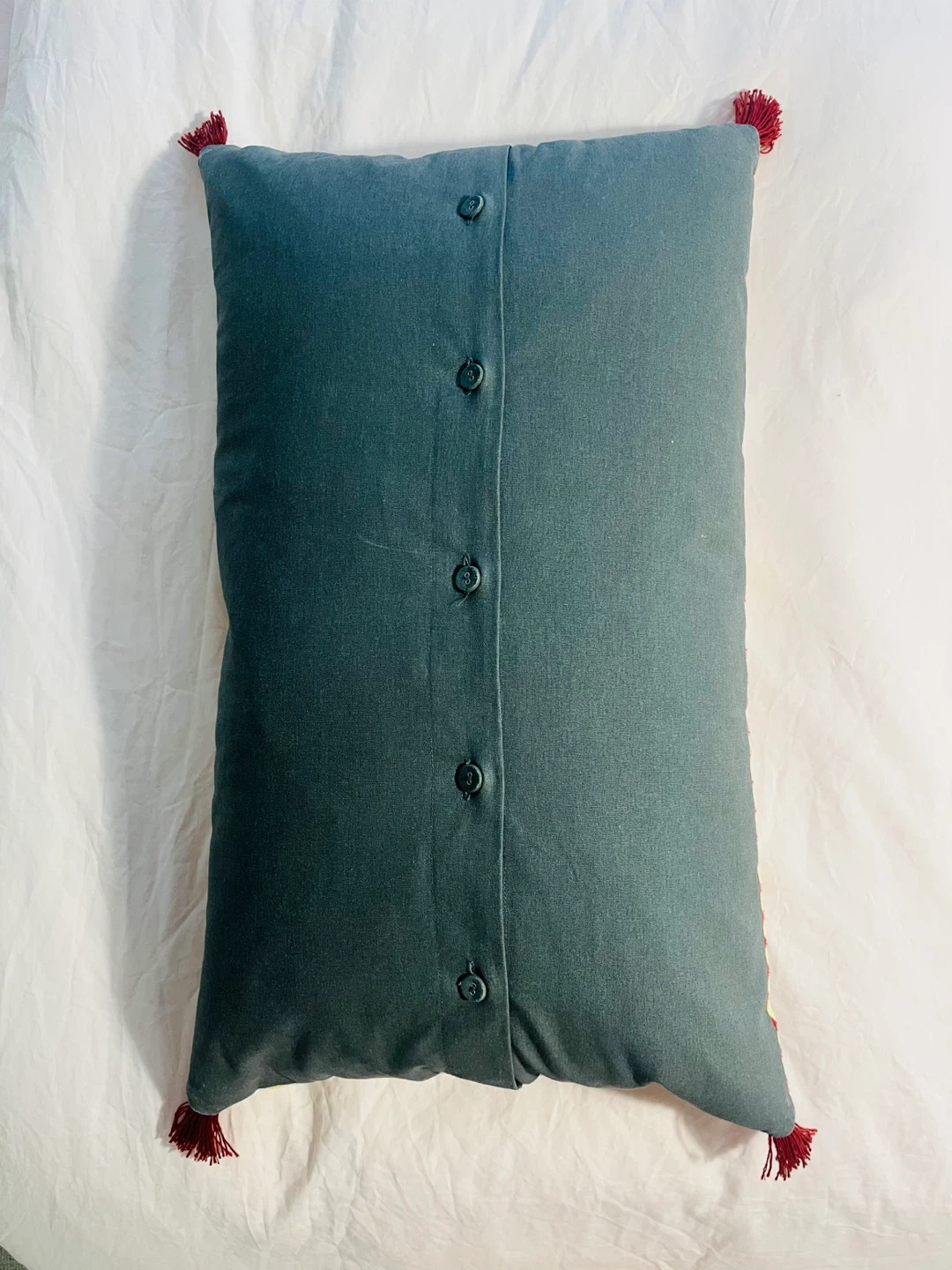 Looking to add a pop of colour to your space? This cushion is in great condition and ready to brighten up any room, multicolor design and measures 16x26"