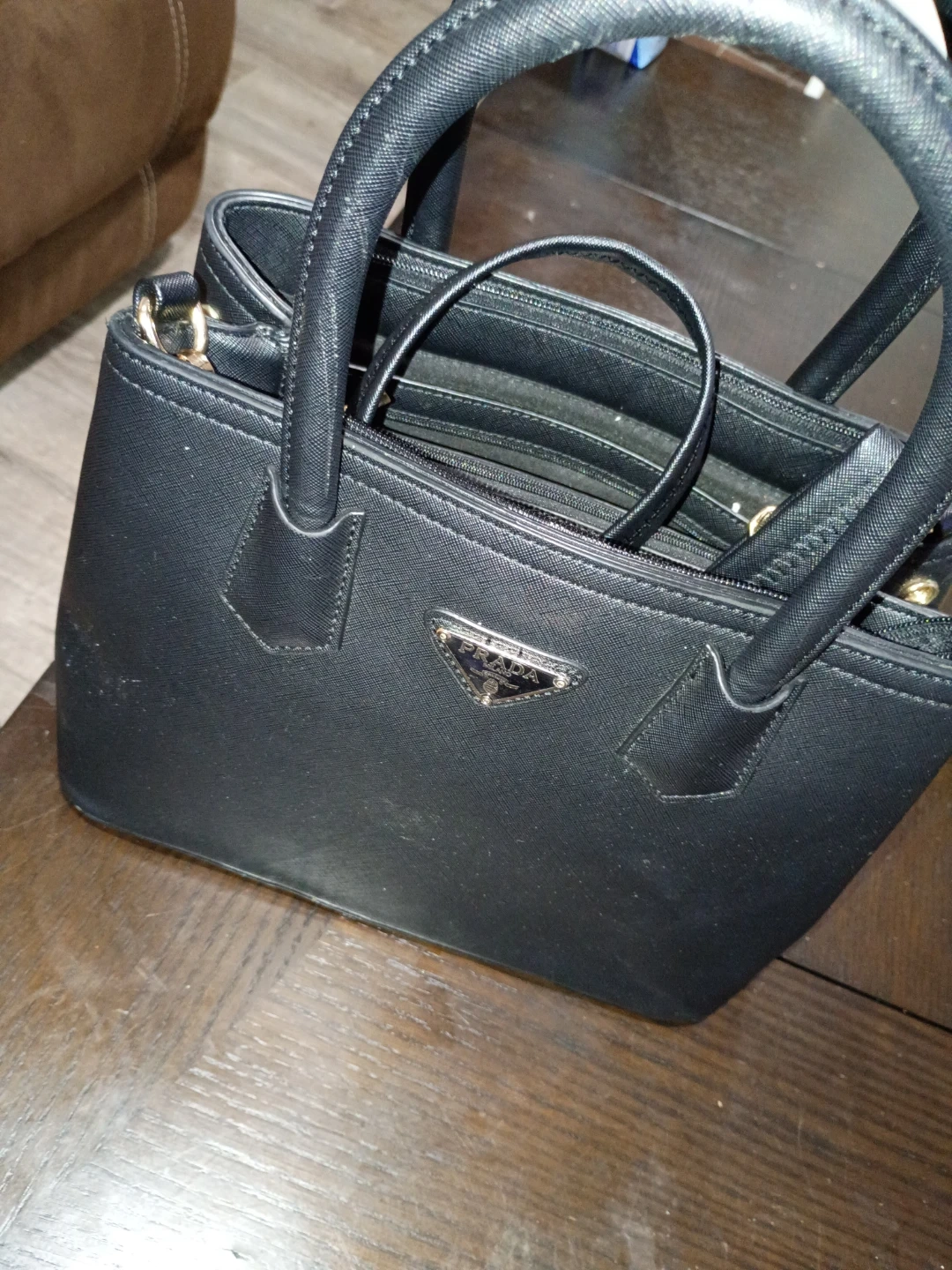 Black Prada nylon shoulder bag. Features a silver chain strap and a detachable coin pouch. Includes a nylon shoulder strap as well. It's a versatile bag for everyday use!