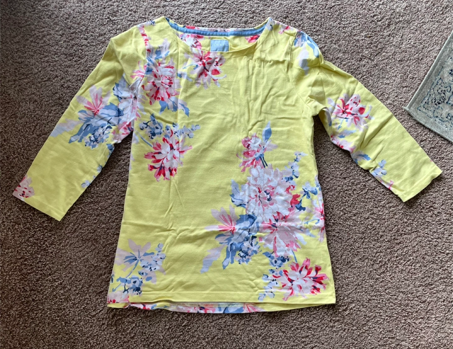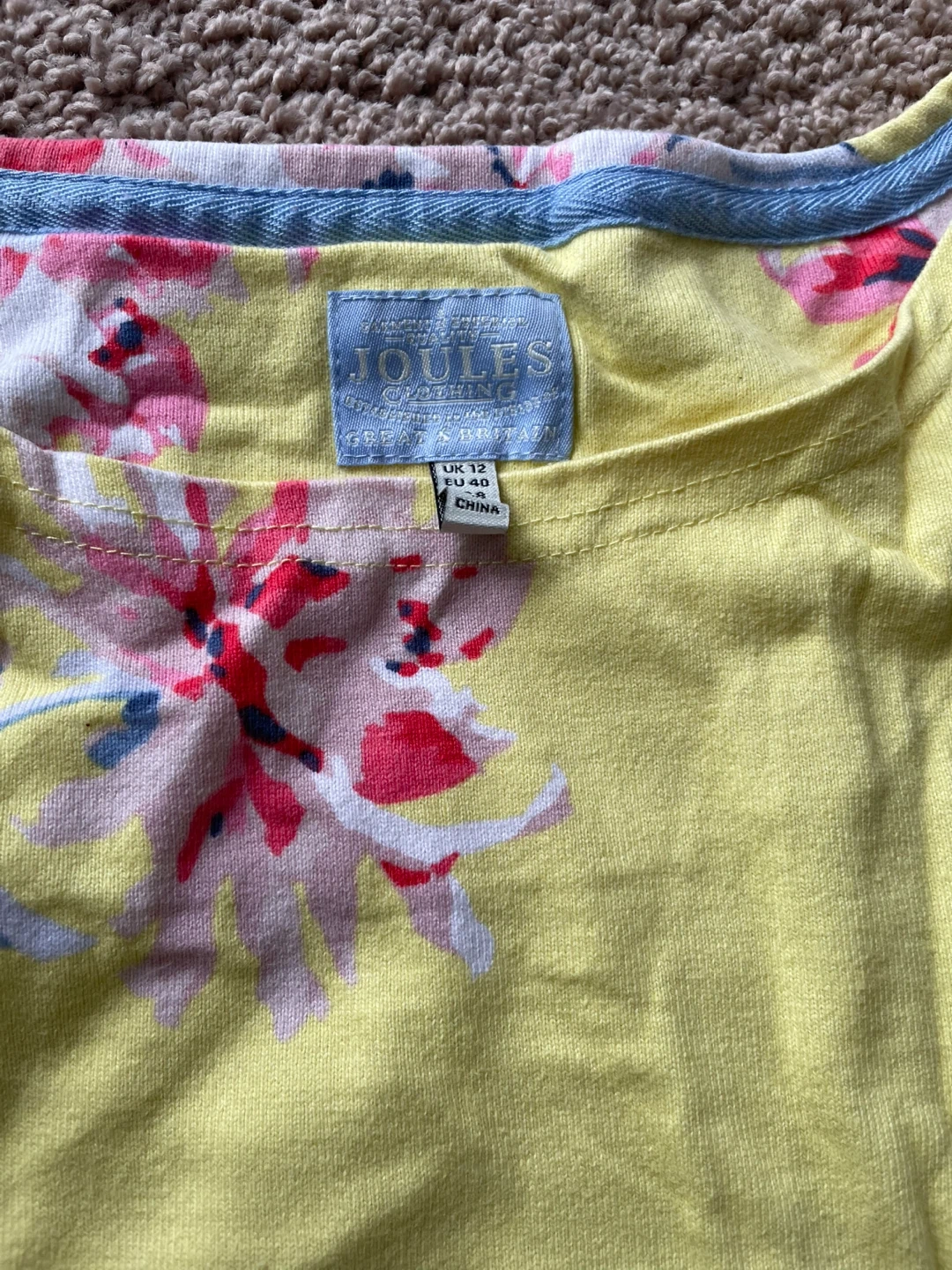 Buy & SellJoules Yellow Floral Long Sleeve Top UK 12Joules Yellow Floral Long Sleeve Top UK 12$10Joules long sleeve top in a yellow floral print. It's a UK size 12. This is a comfy casual top.ConditionGoodBrandJoulesWHERE TO MEETElementary school playgroundView MapSELLERMariaSeafair120 reviews0 chats·0 favorites·1 viewsSEND CHAT TO SELLERHi Maria! I’m interested in your listing.Hi Maria! I’m interested in your listing.Get the Karrot app to chatSign In to chat