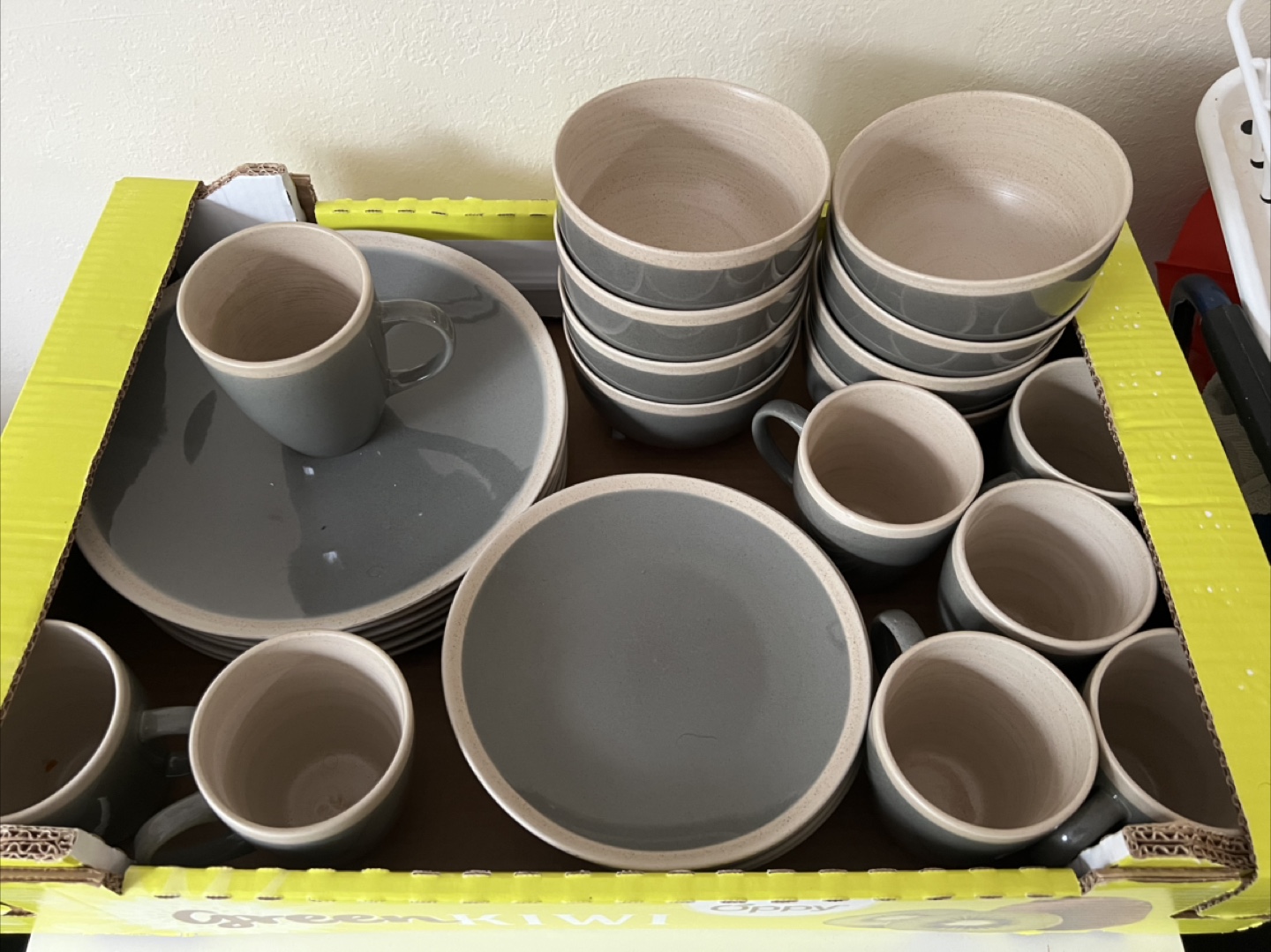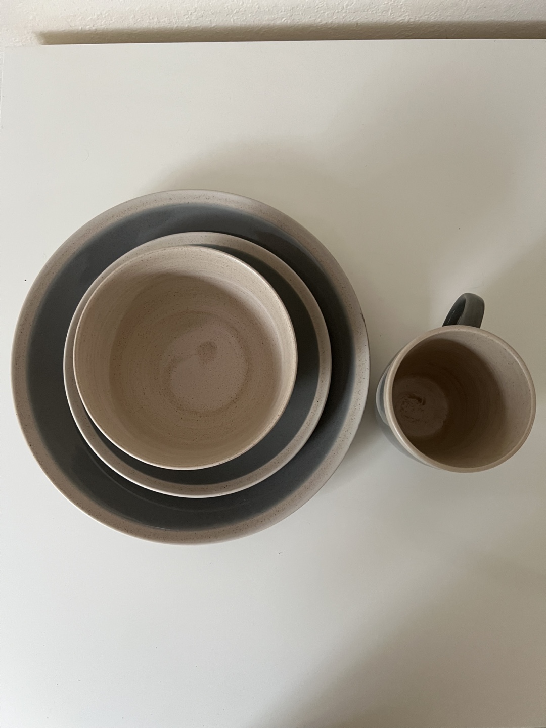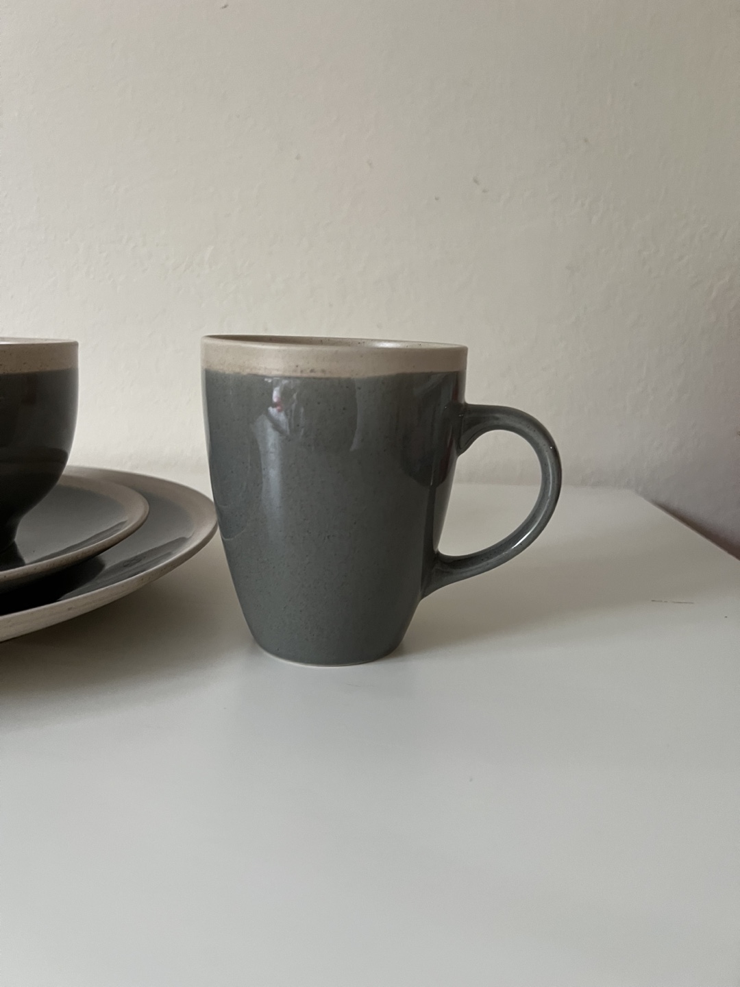 Selling a Maison Plus China dinnerware set! It includes a plate, bowl, and mug. The set is in great condition and would be a lovely addition to any kitchen