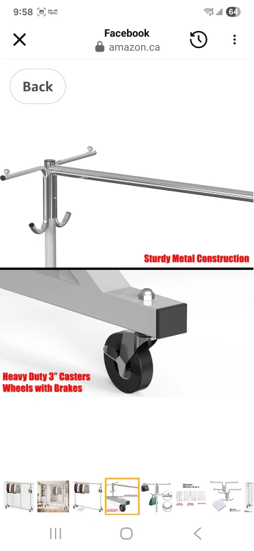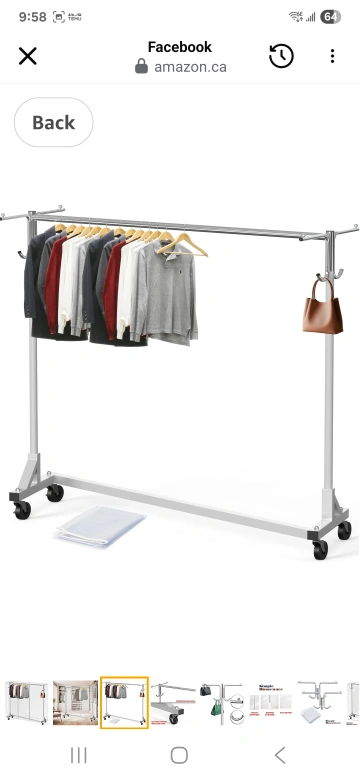 This garment rack by Simple Houseware is perfect for adding some extra storage to your space! It features a sturdy metal construction and heavy-duty 3" caster wheels with brakes. The dimensions are 63.25" x 24.5" x 66".