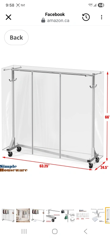 This garment rack by Simple Houseware is perfect for adding some extra storage to your space! It features a sturdy metal construction and heavy-duty 3" caster wheels with brakes. The dimensions are 63.25" x 24.5" x 66".