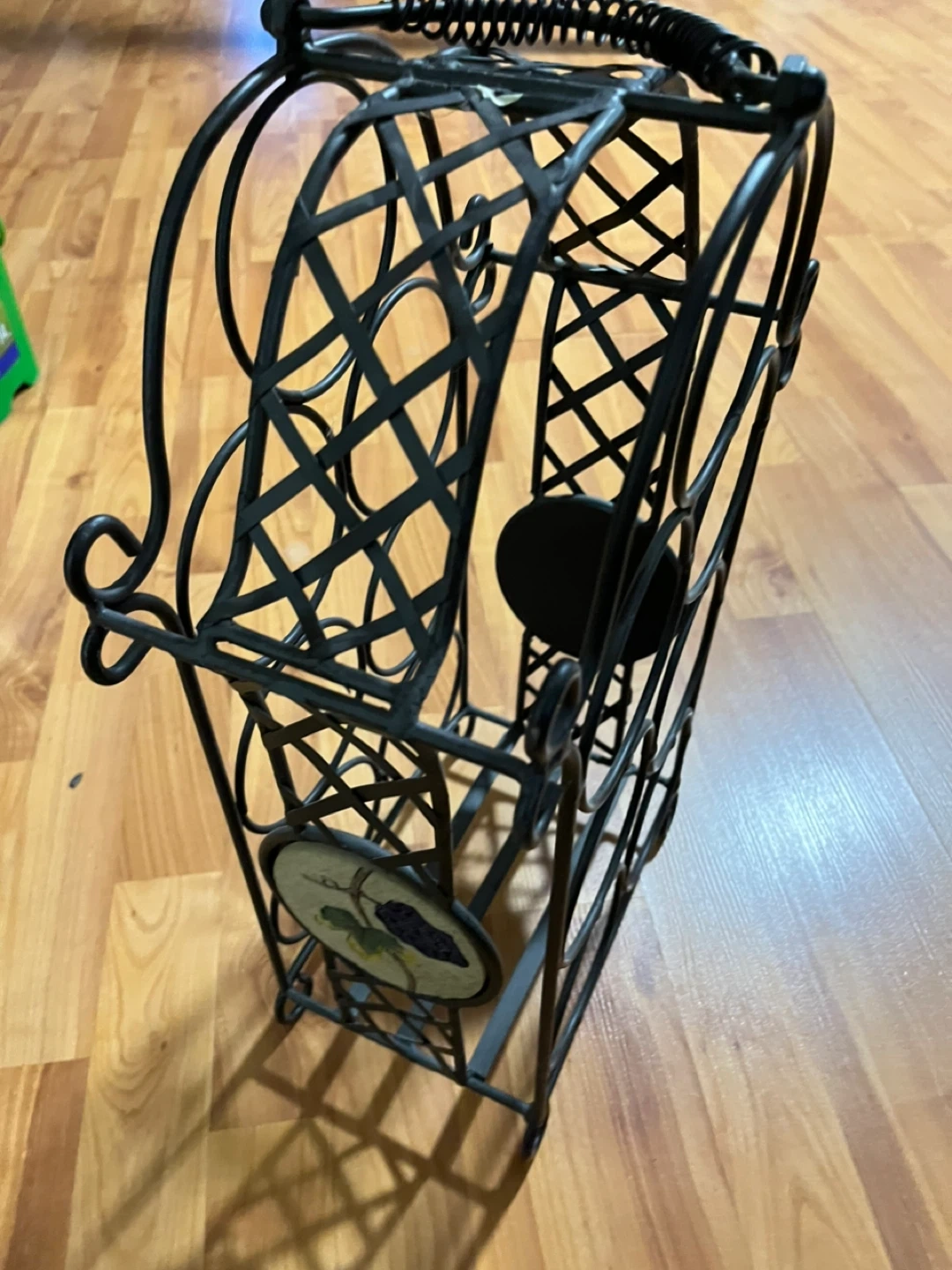 Here's a black metal wine rack, perfect for displaying your favourite bottles! It's in great shape and ready to add a touch of elegance to your space