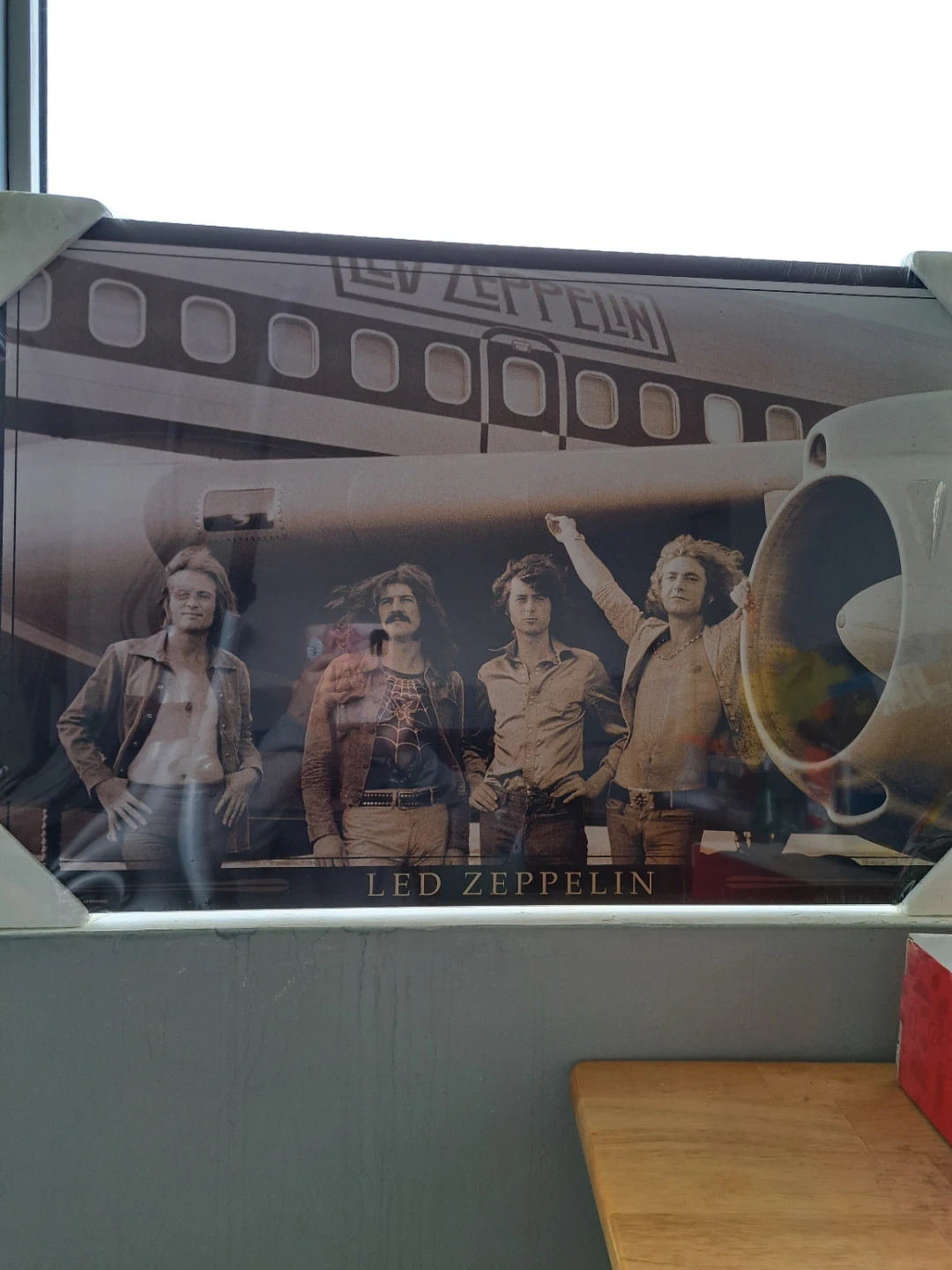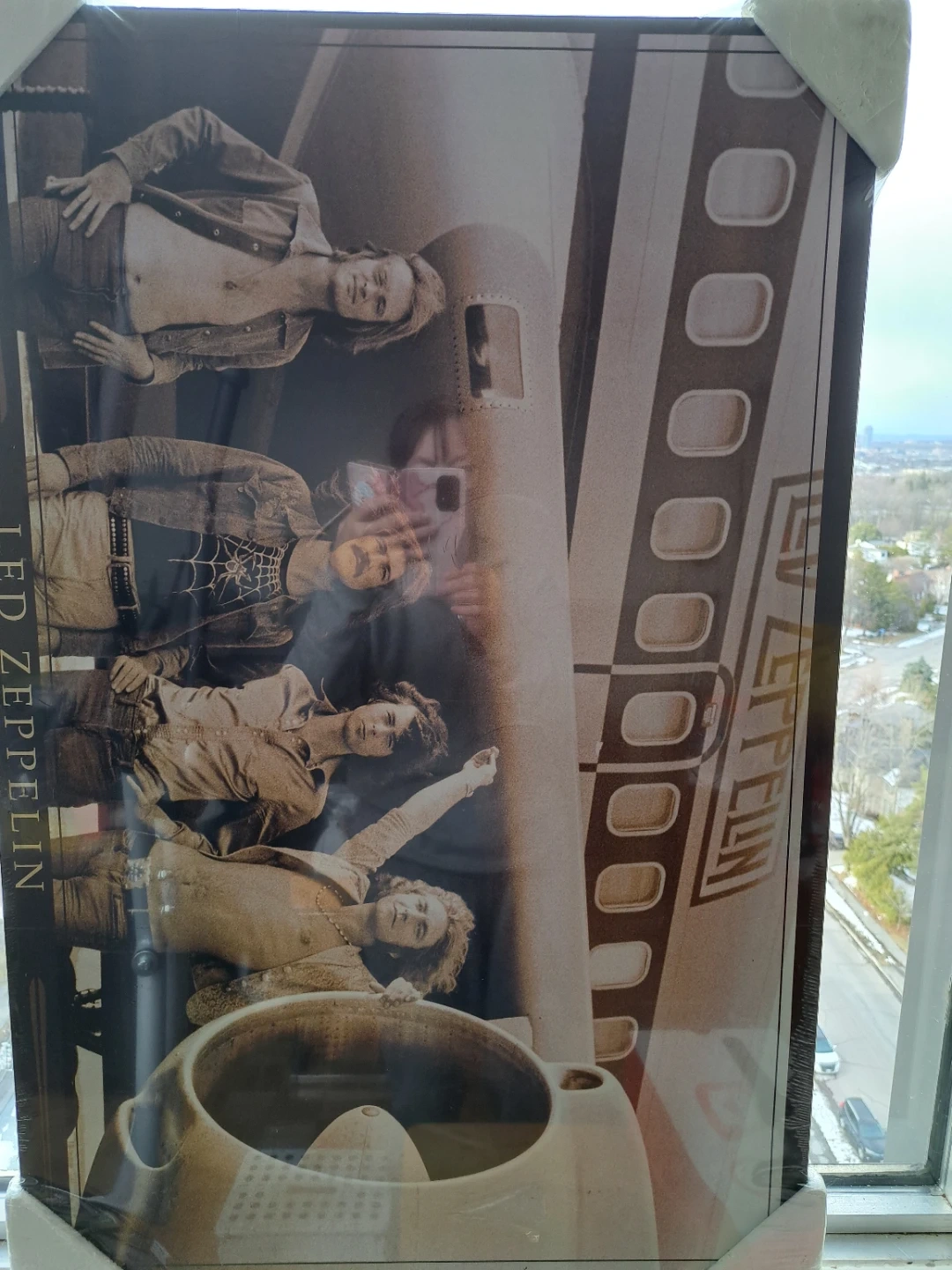 Features the iconic Led Zeppelin band posing in front of an airplane. This poster captures a classic moment for fans. It's a great piece for any music enthusiast's collection.π₯