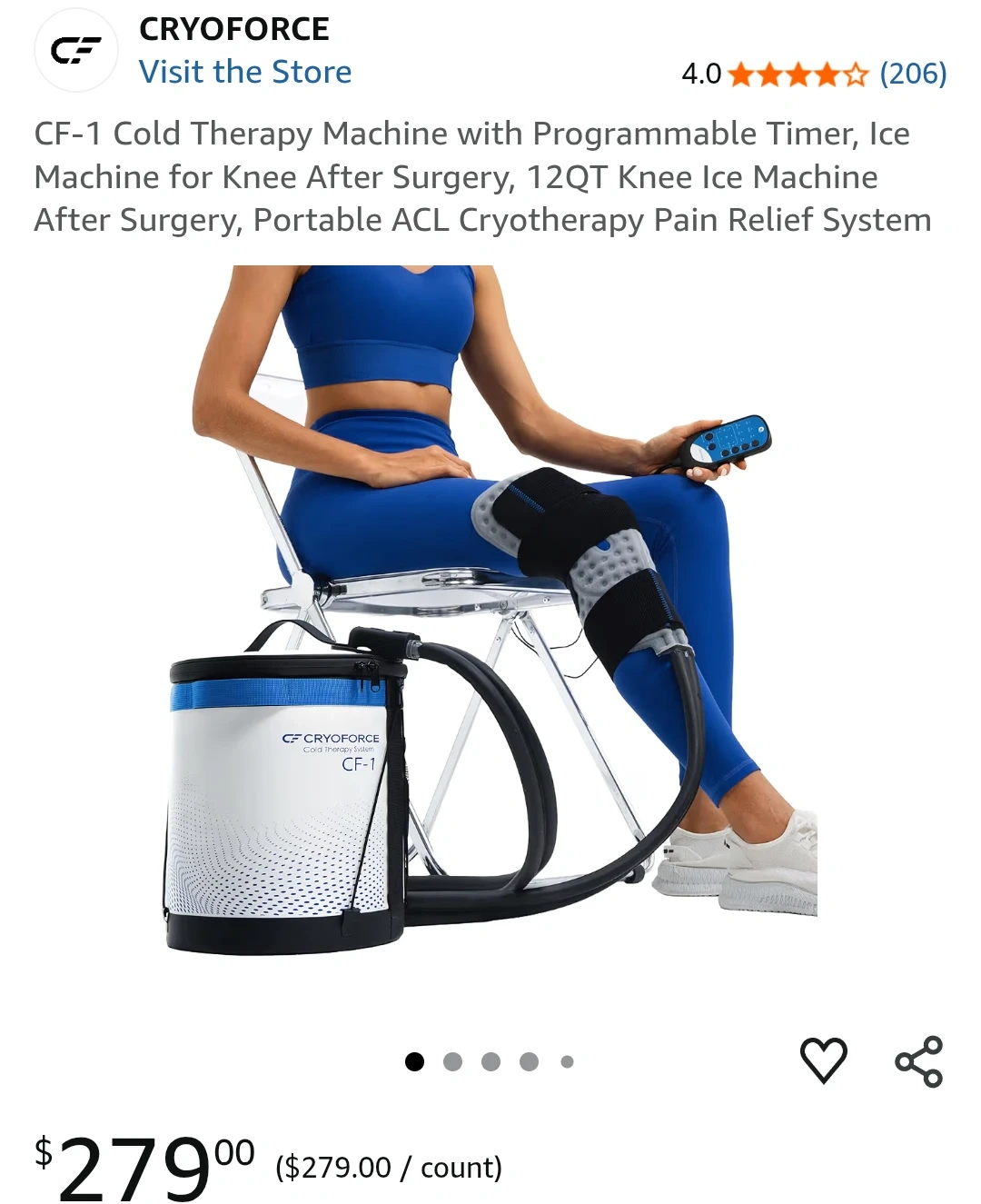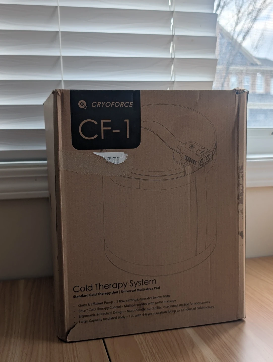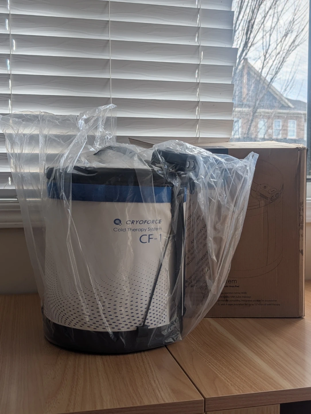 CryoForce CF-1 Cold Therapy Machine. Includes the portable insulated unit and tubing. The unit offers 3 flow settings and quiet operation. It's designed for multi-area pad use.