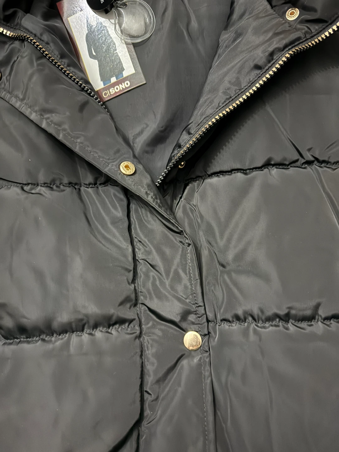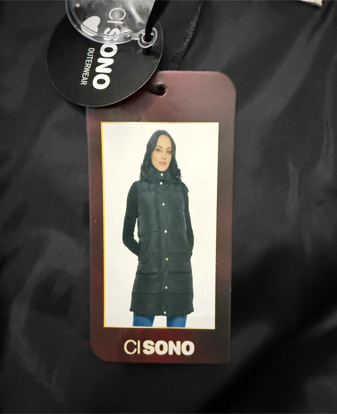 This black puffer vest from Ci Sono is a great layering piece. It features a full zip front with snap closures and two front pockets. The vest has a cozy hood for extra warmth. Perfect for cooler fall or spring days! Size XL. New with tags