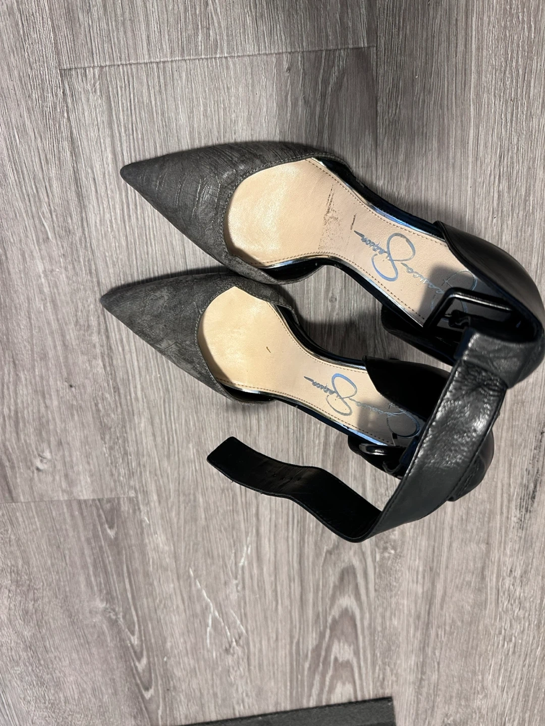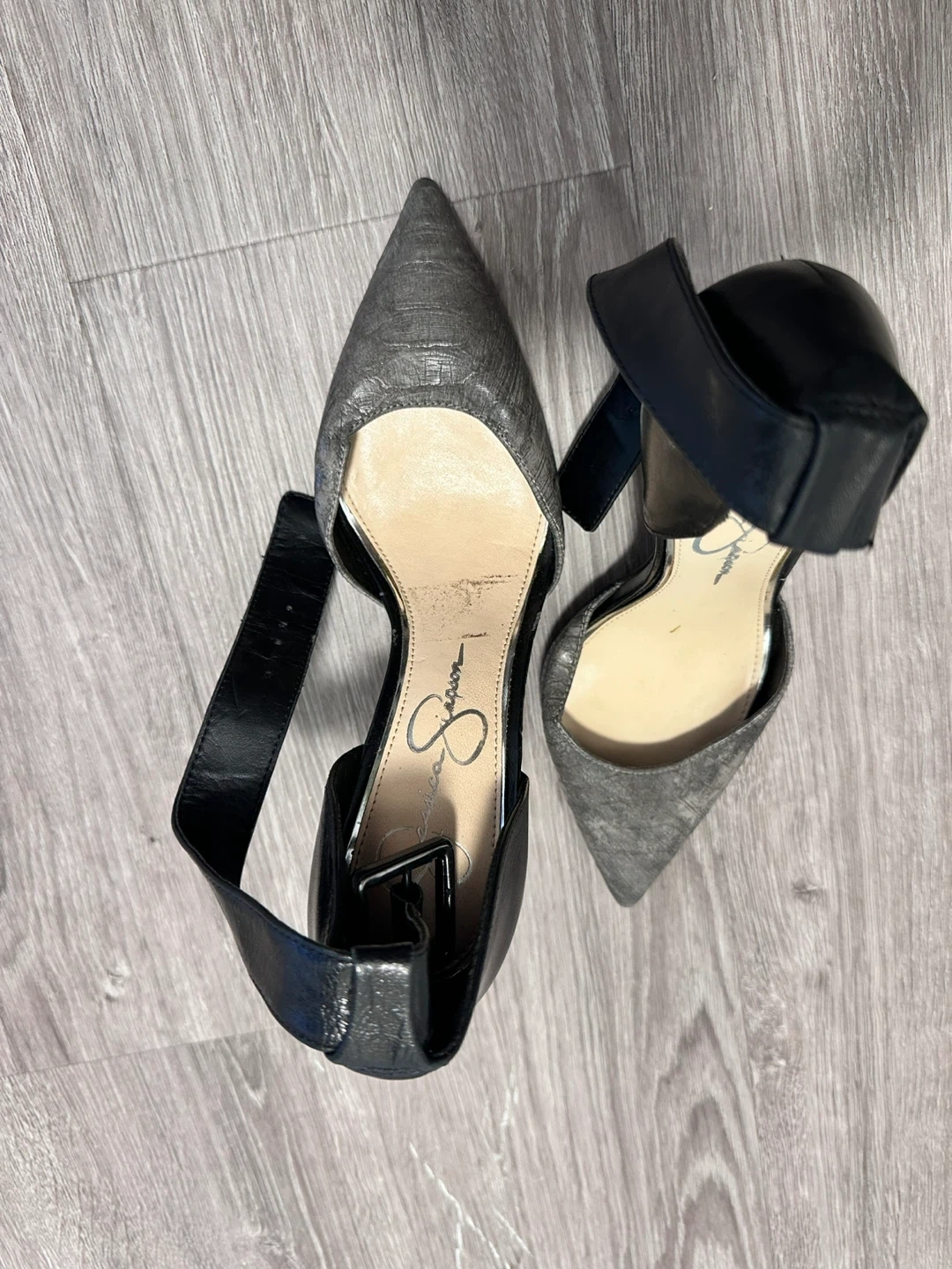 Jessica Simpson Grey Faux Snakeskin Ankle Strap Heels